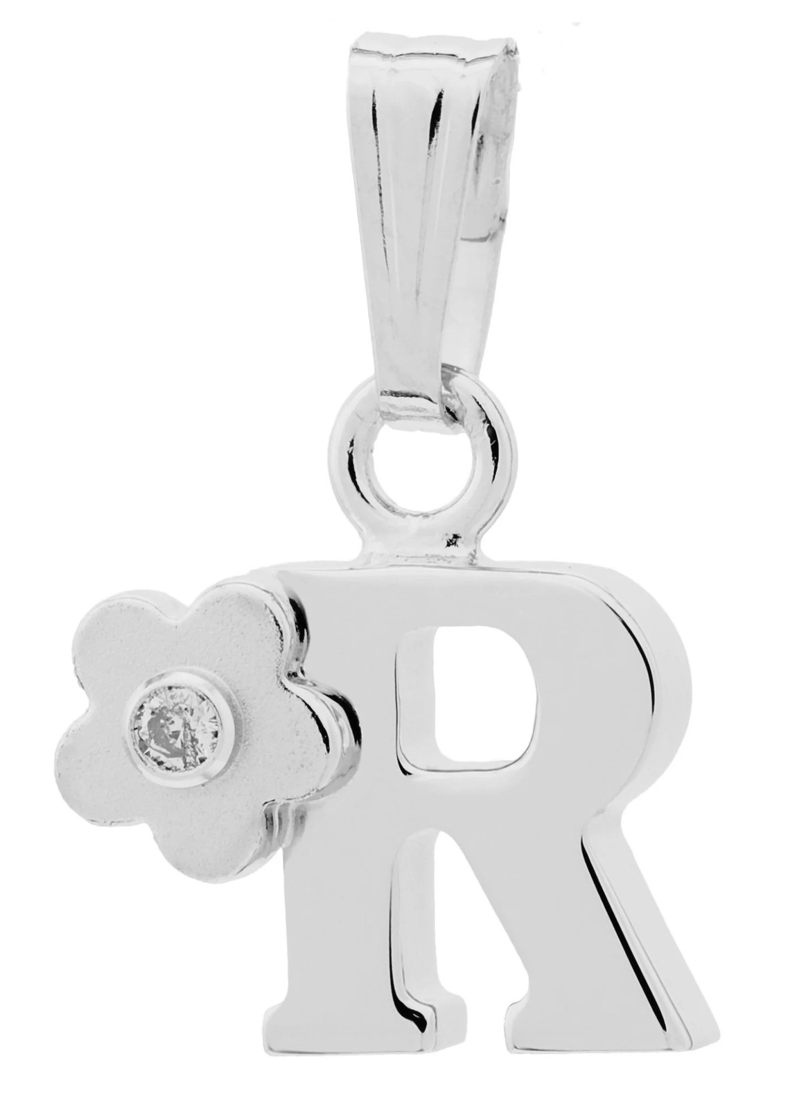 Sterling Silver 0.01cttw Diamond Initial R Flower Pendant with Chain