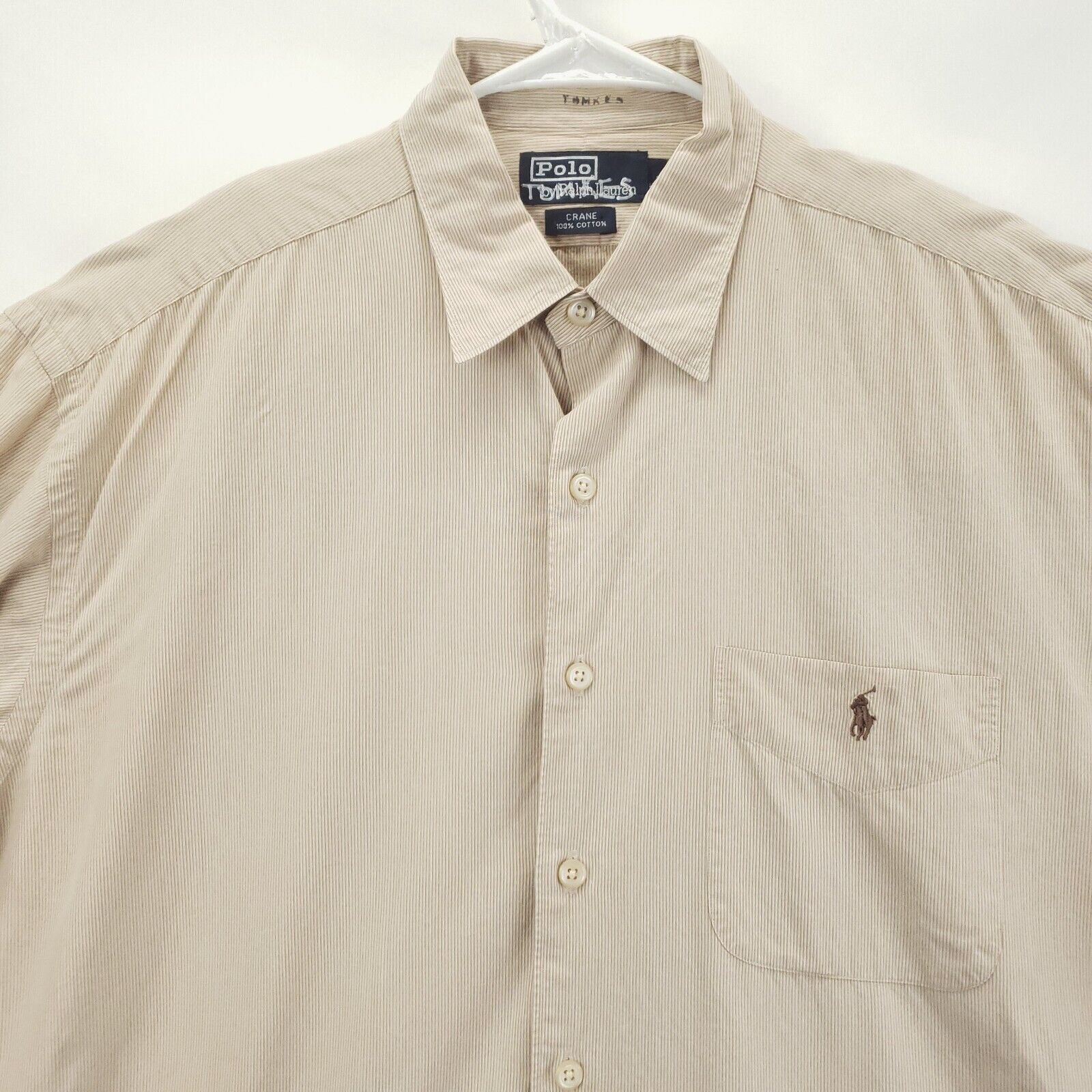 как выглядит Polo Ralph Lauren Shirt Mens Large Beige Crane 100 Cotton Classic Button-Up фото