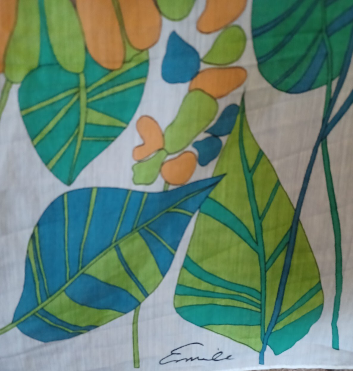 Vintage Emile Scarf with Flowers 26 inches square. Green Orange Brown Blue White