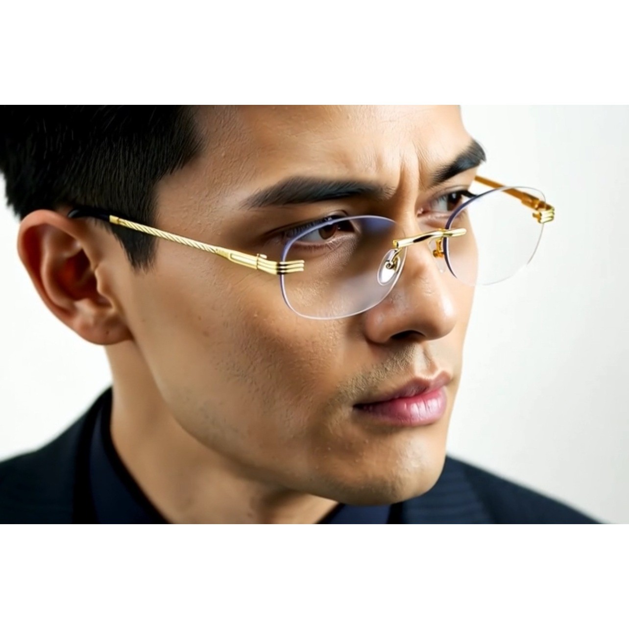 как выглядит Rimless Oval Glasses Gold Frame Clear Lens Vintage Style Men