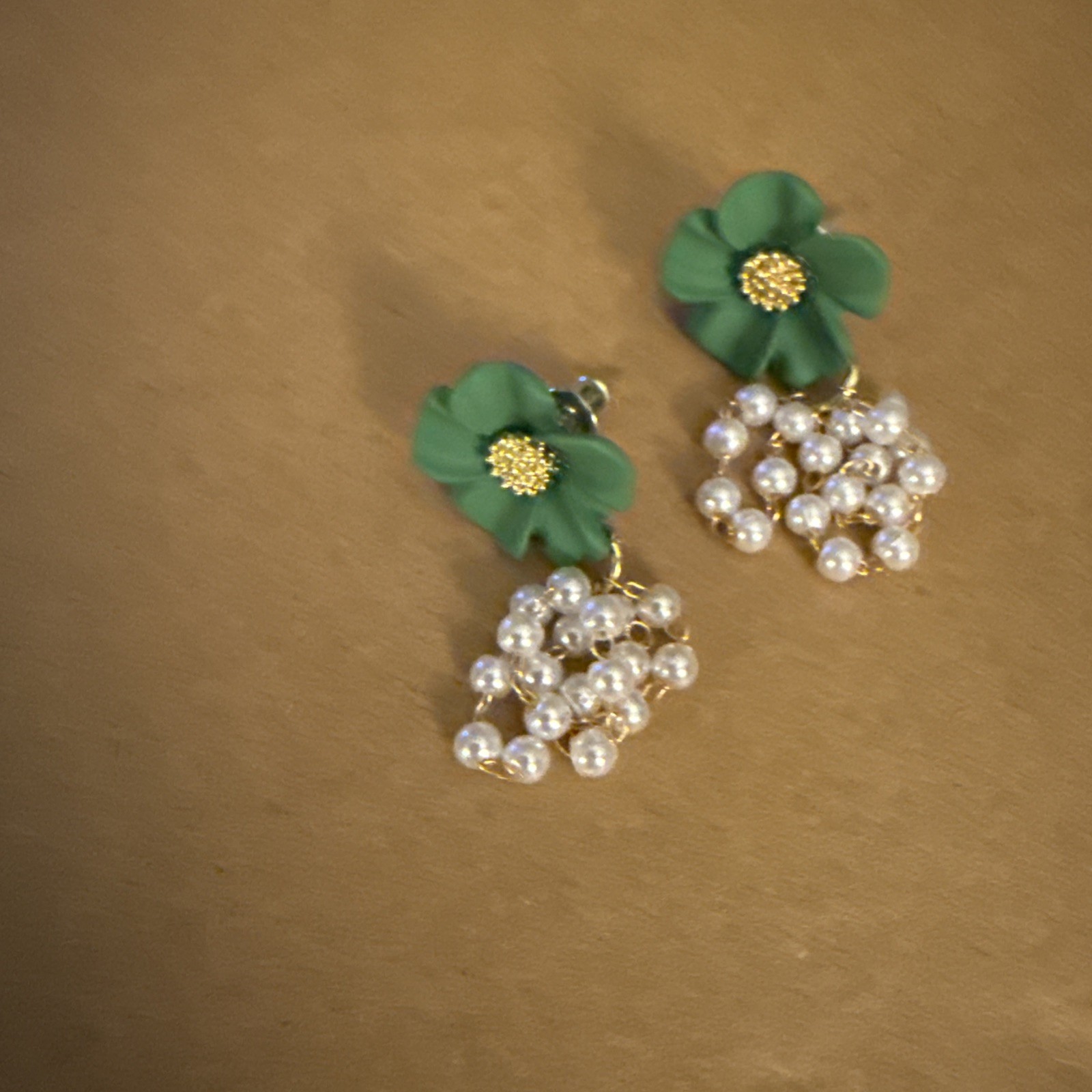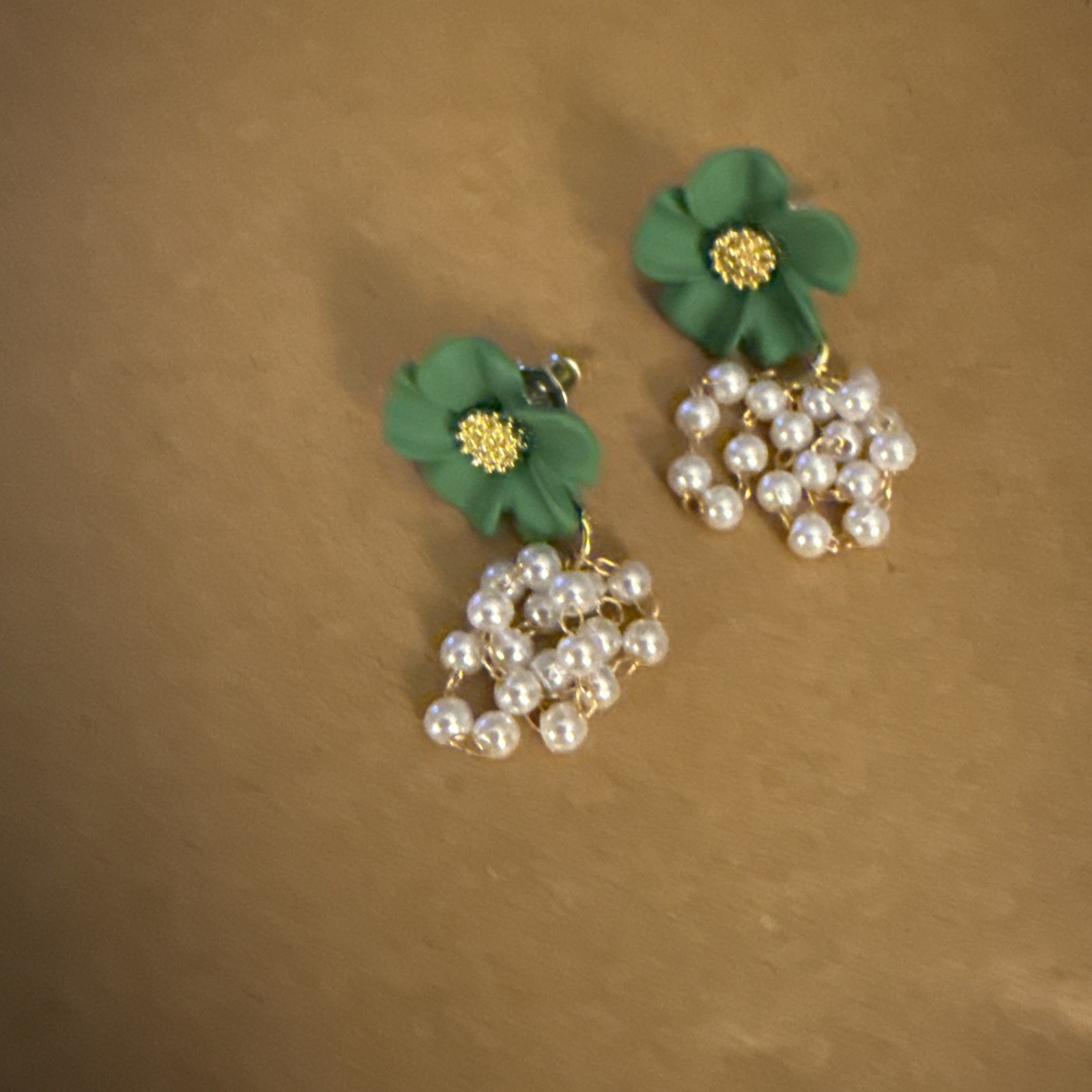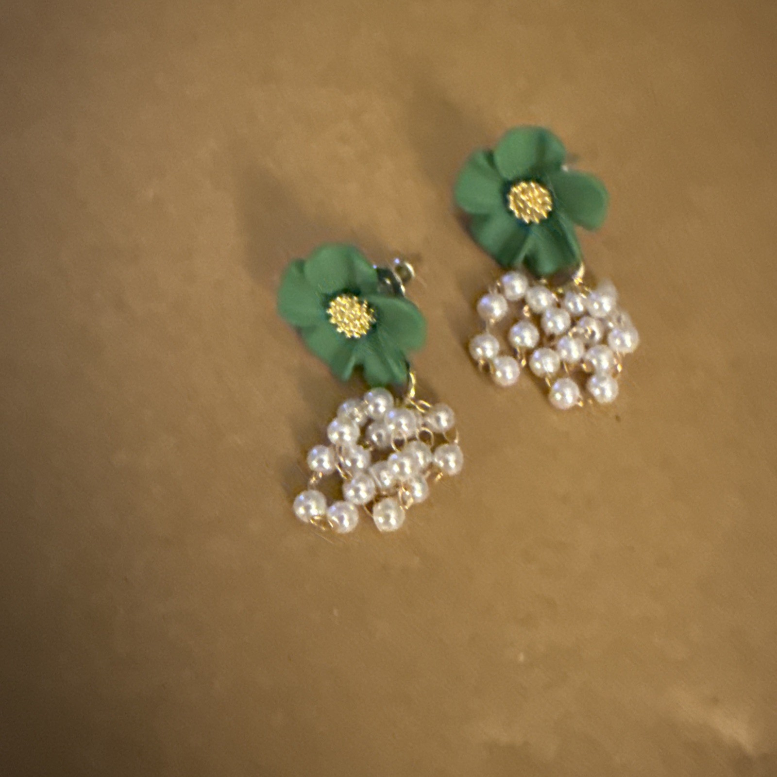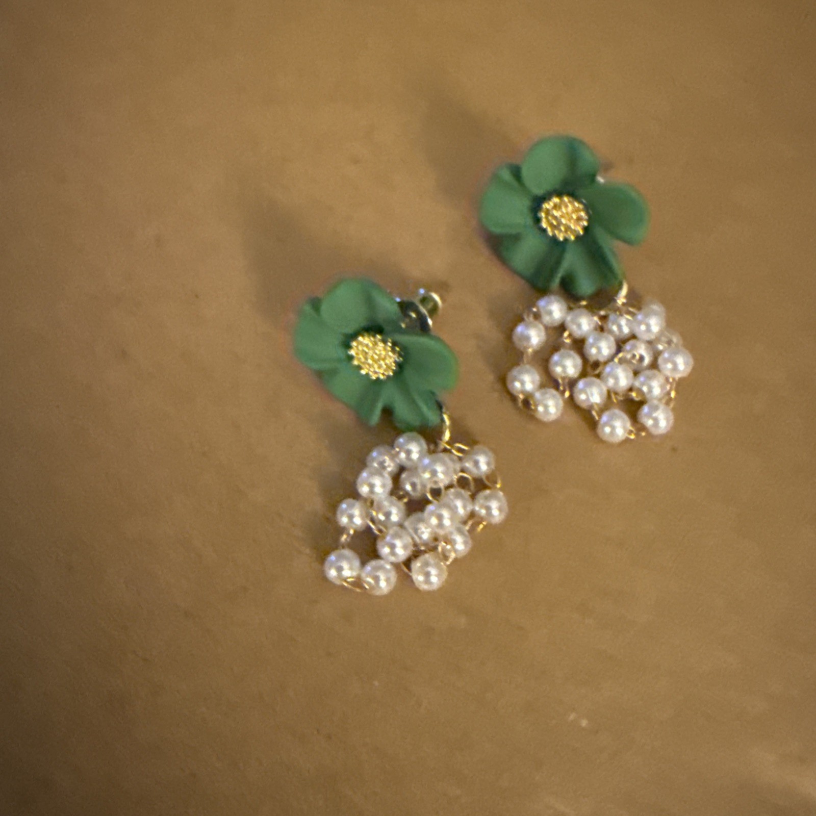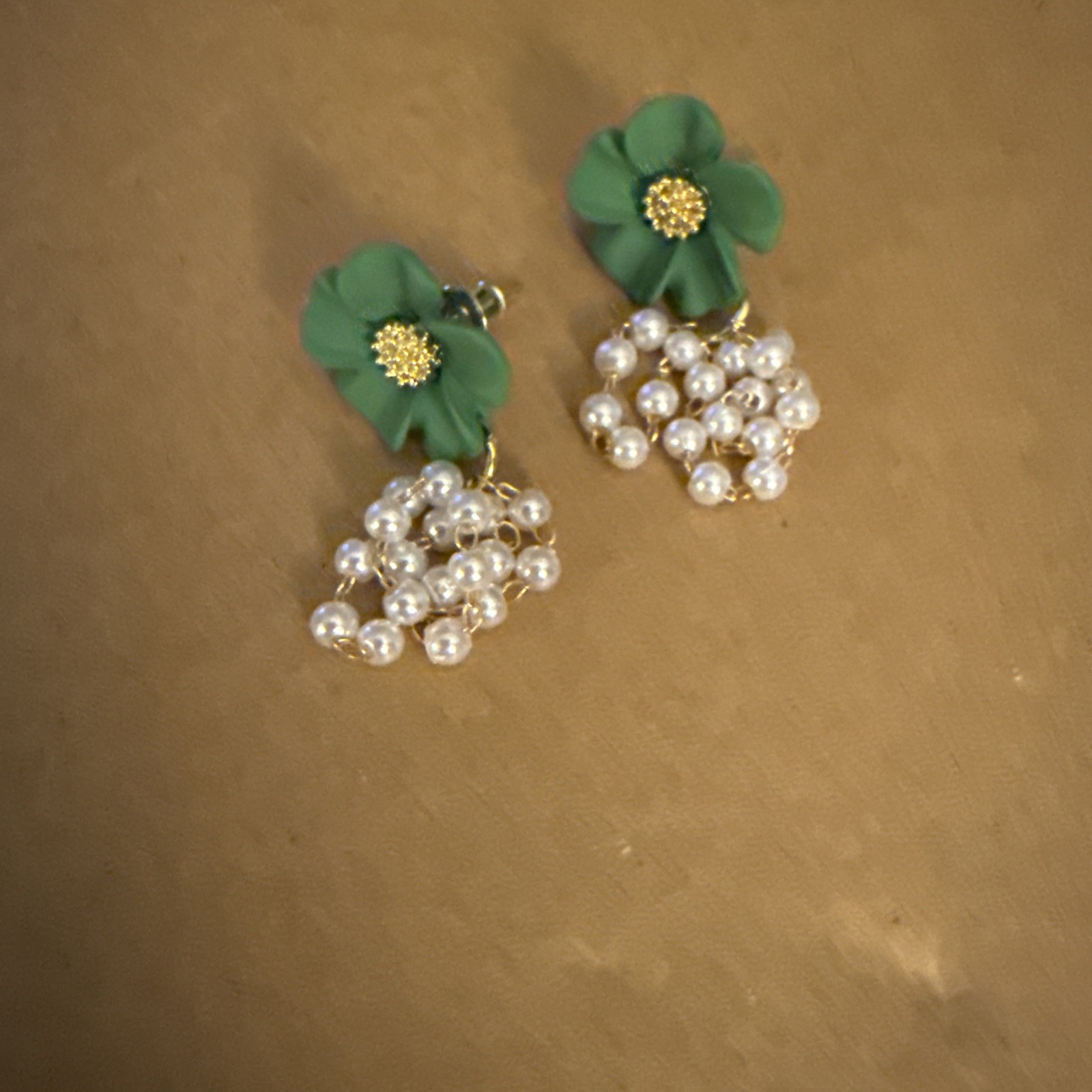 как выглядит Elegant Green Floral With Faux Pearls Dangle Earrings фото