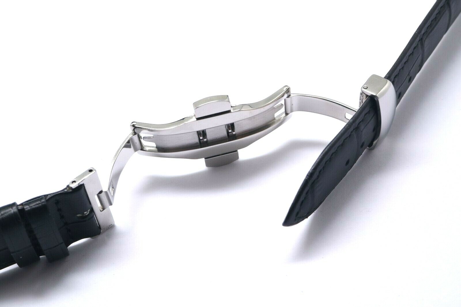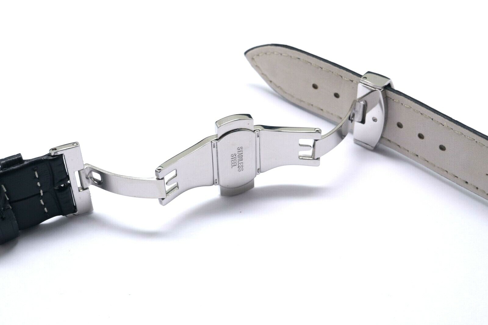 как выглядит 21mm Black Croco Embossed Leather Watch Band With Silver Tone Push Button Clasp фото