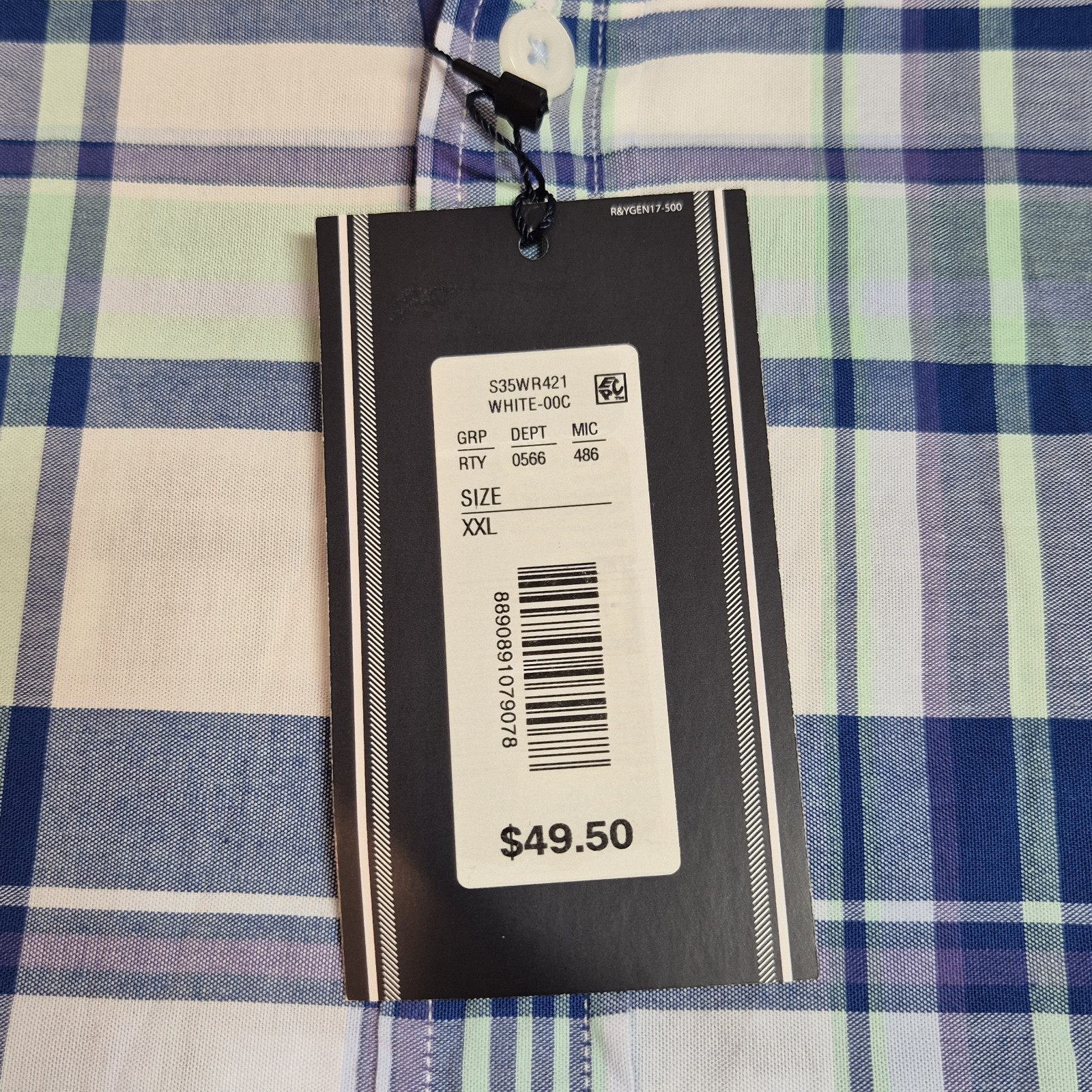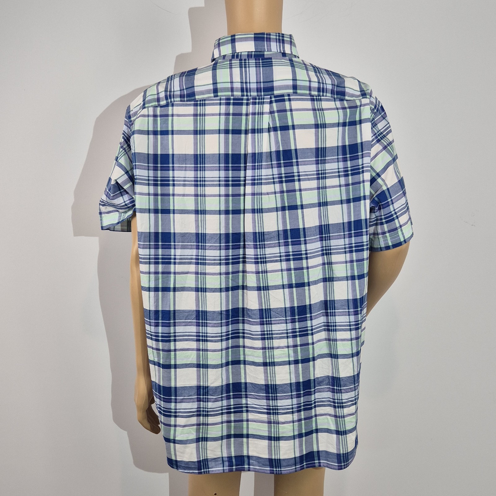 как выглядит Roundtree Yorke Mens Size XXL Short Sleeve Shirt Plaid Blue Green Button Up 48 фото