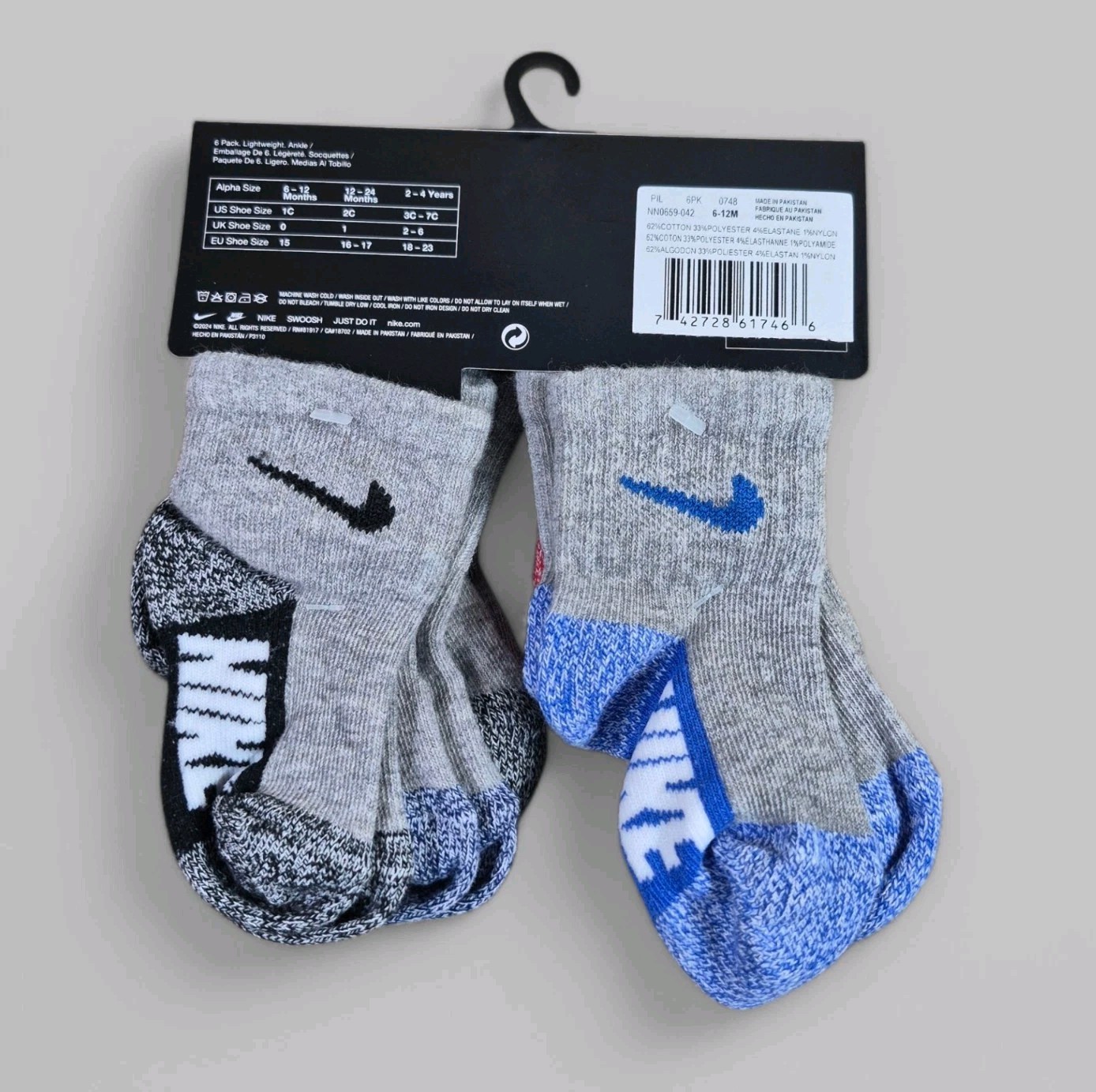 NIKE Boys Socks Baby Newborn Ankle Lightweight Everyday 6 Pair Size 6-12 Months
