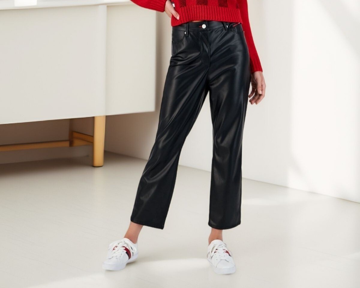 Tommy Jeans Womens Mid Rise Faux Leather Straight Leg Pants Black Size 29 NWT