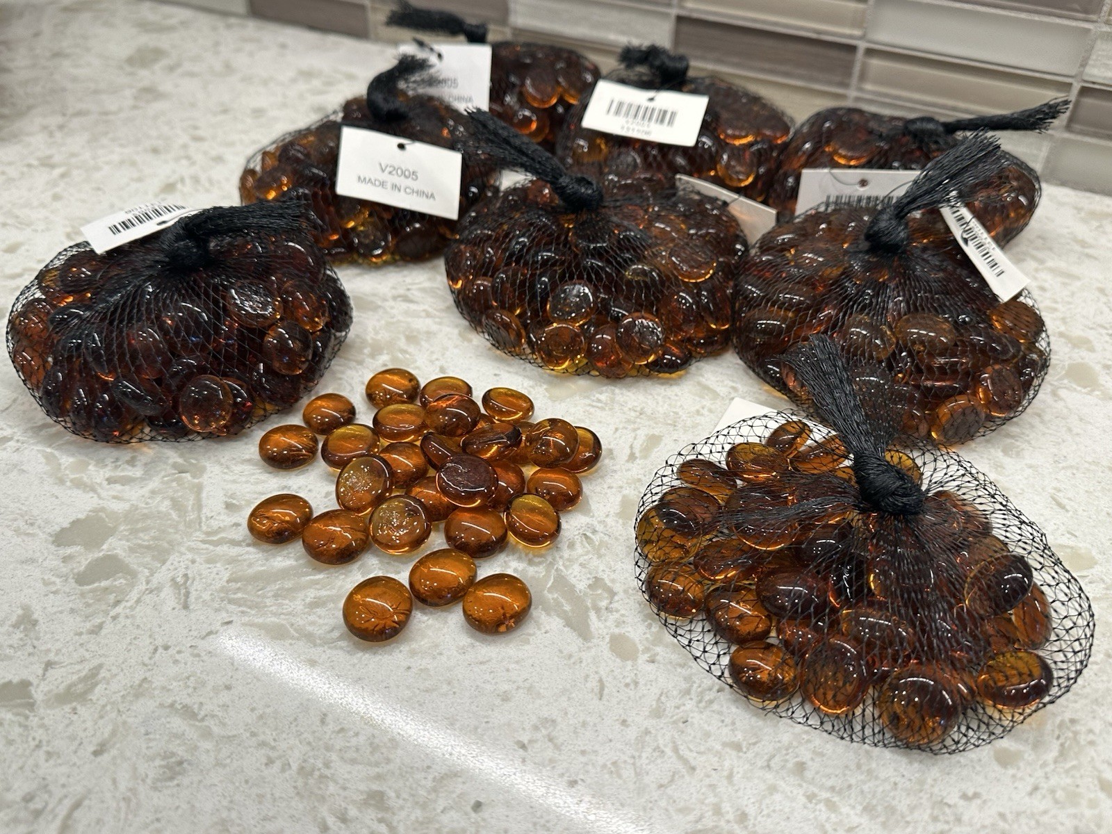 8 Lbs Of Dark Amber Glass Gems, Med Size approx 3/4 Marbles, Pebbles, Mosaic