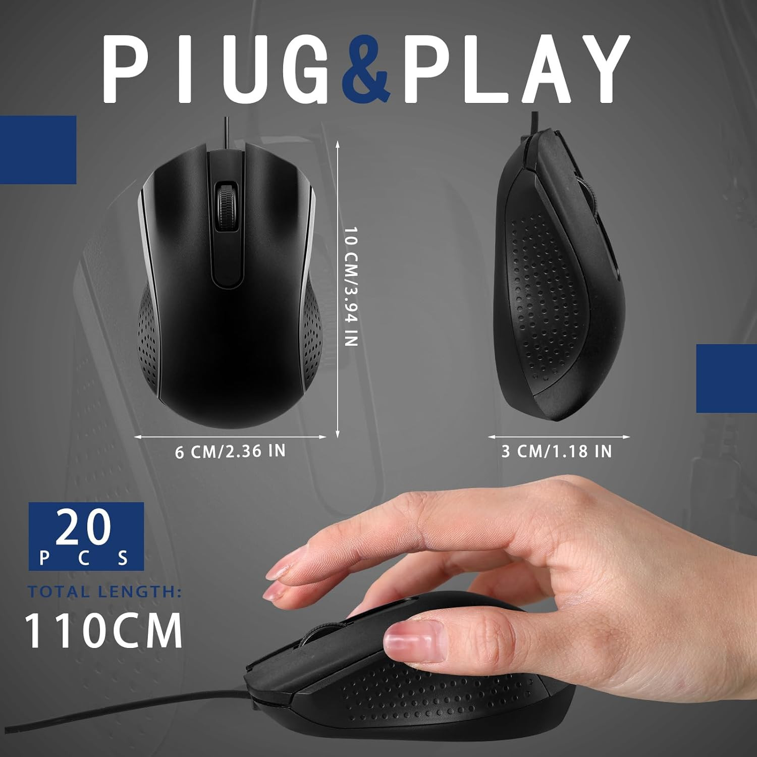 20 Pcs Wired USB Computer Mouse Bulk 3-Button Corded Wired Mouse for Laptop Desk