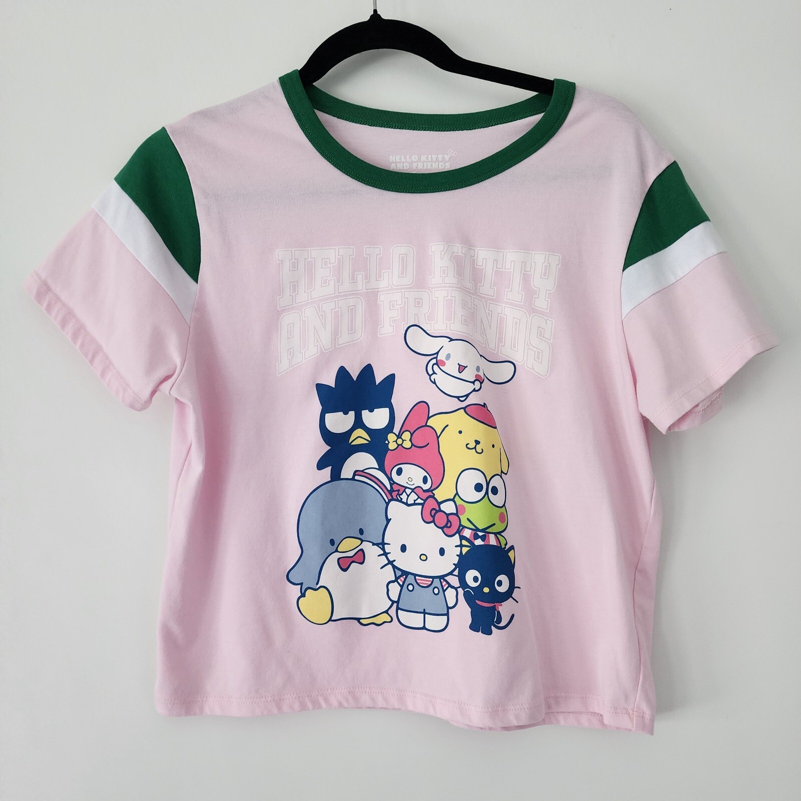 как выглядит Lot of 3 Hello Kitty cropped t-shirts pink gray womens size L/XL фото