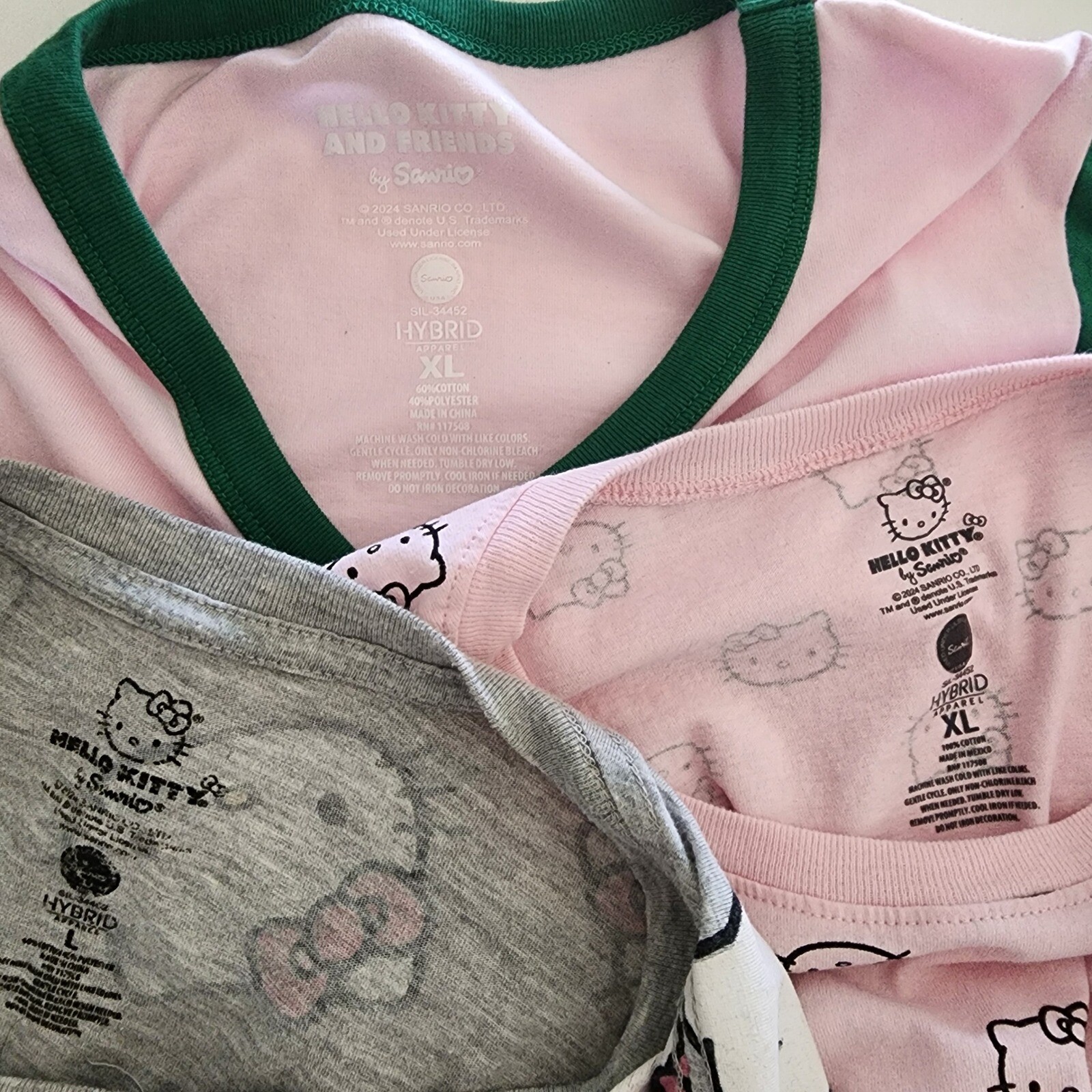 Lot of 3 Hello Kitty cropped t-shirts pink gray womens size L/XL