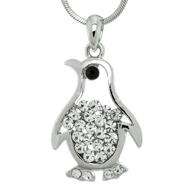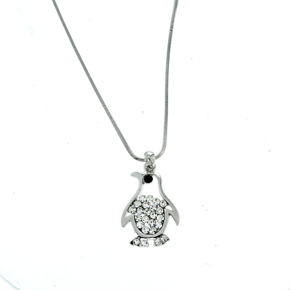 как выглядит PENGUIN Pendant Made With Swarovski Crystal Necklace Clear Charm 20" Chain фото