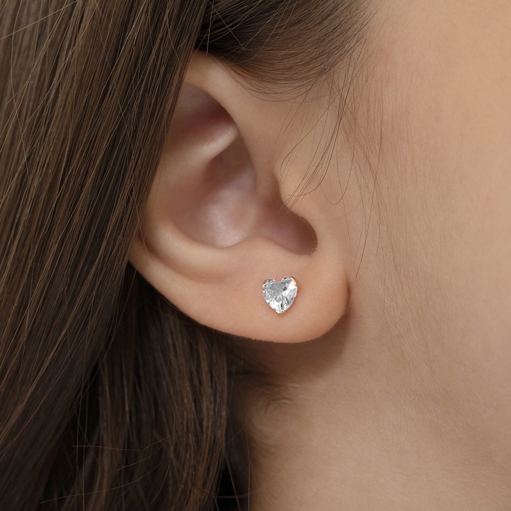 как выглядит 14k Yellow Gold Girls 5mm Simulated Birthstone CZ Heart Screw Back Earrings фото