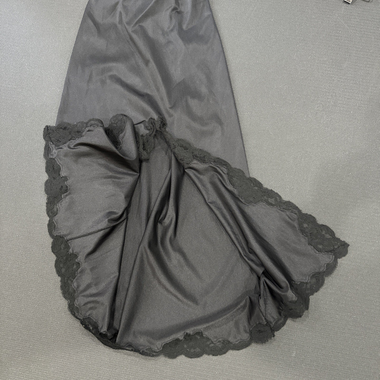 Vintage Wonder Maid Long Half Slip Skirt Lace Trim Black Front Slit Non Cling S