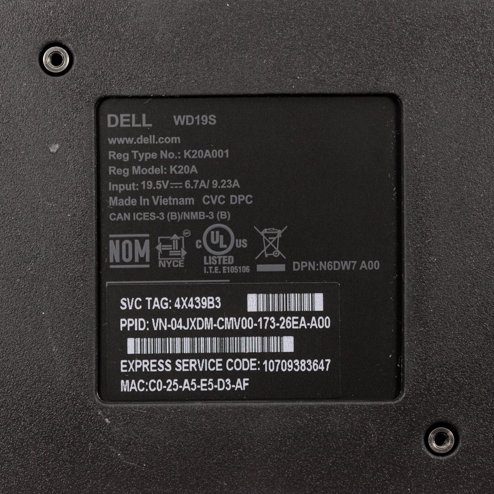 Dell WD19S / K20A USB-C Performance Docking Station N6DW7 K20A001 w/ 180w AC