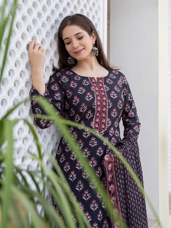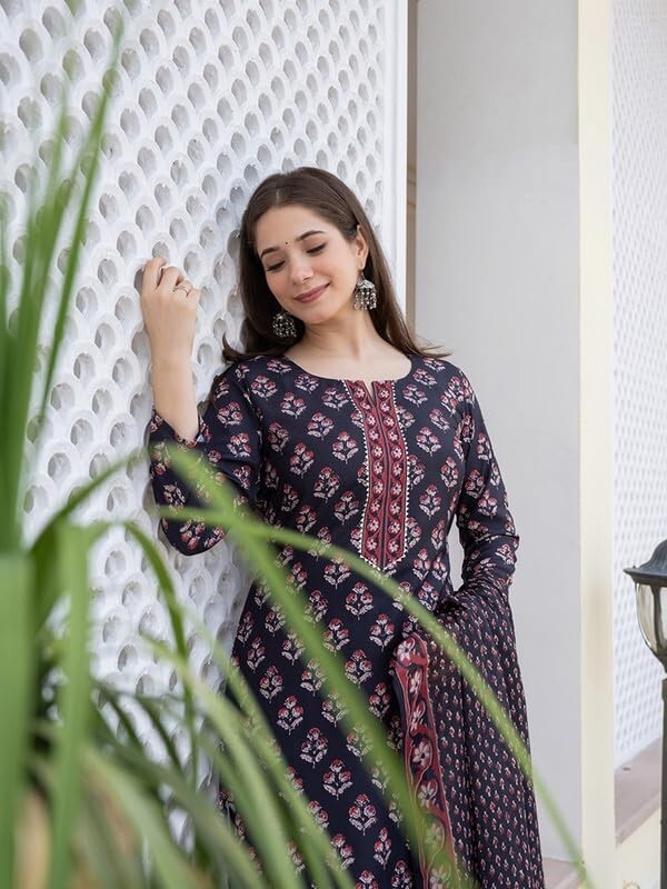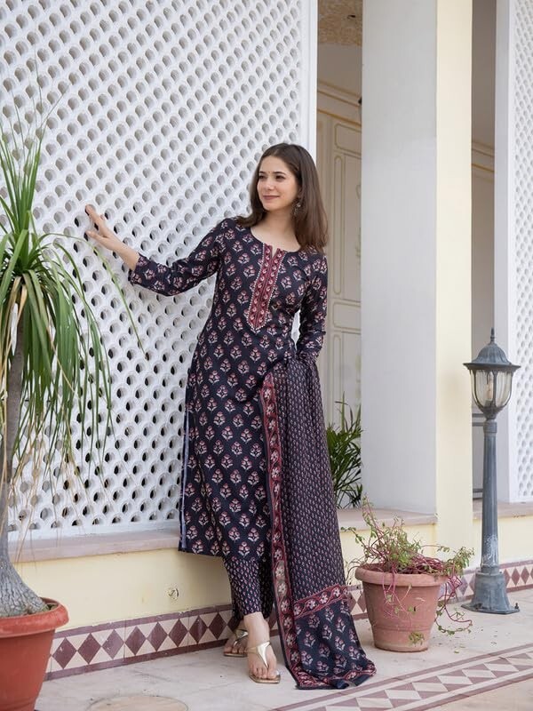 как выглядит Womens Floral Straight Printed Kurta Pant With Dupatta Set фото