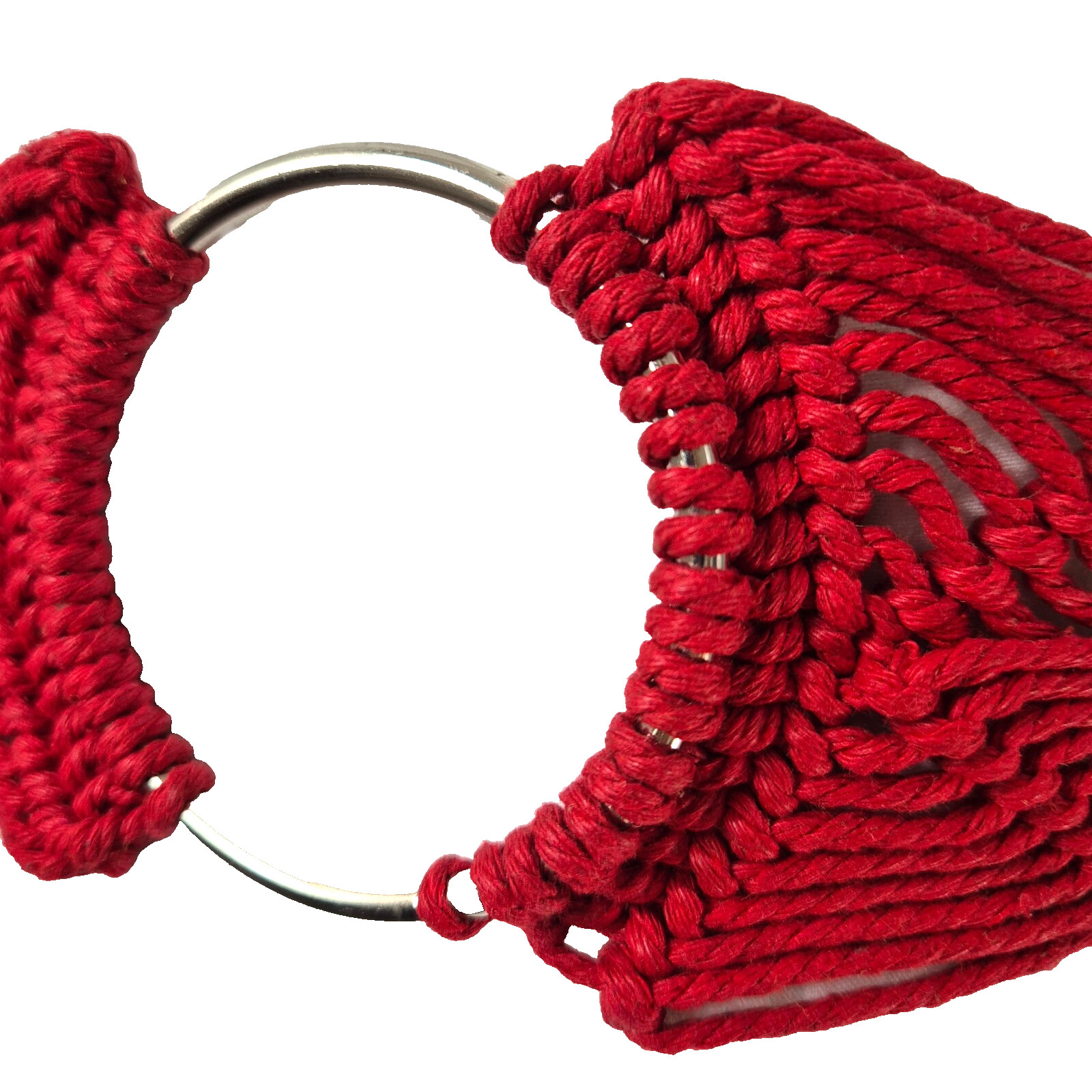 Vintage Belt Red Macrame Cord Plaited Silver Ring Tie Reversible Boho Hippie Lg