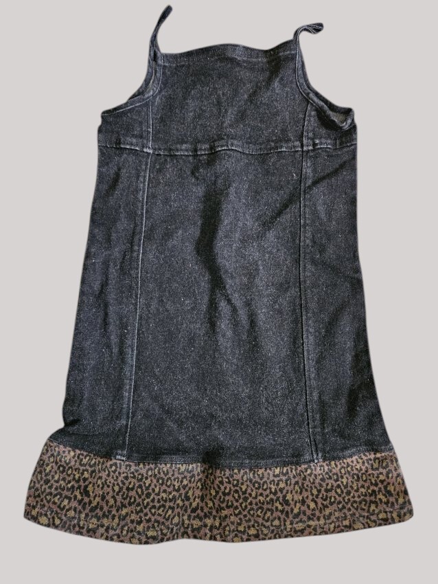 THE CHILDREN S PLACE Black Denim Jumper Animal Print Trim Size 8