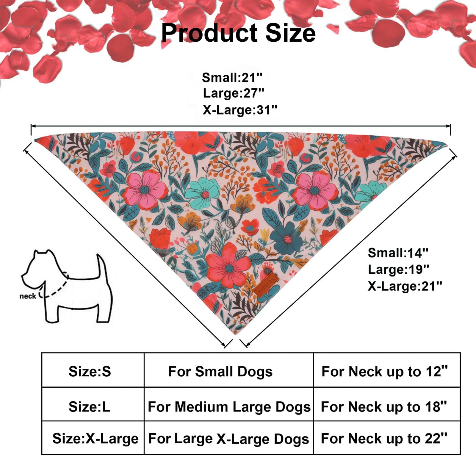 Flower Dog Bandana2 Pcs Floral Reversible Dog Scarf Multi Size Triangle Pet B...