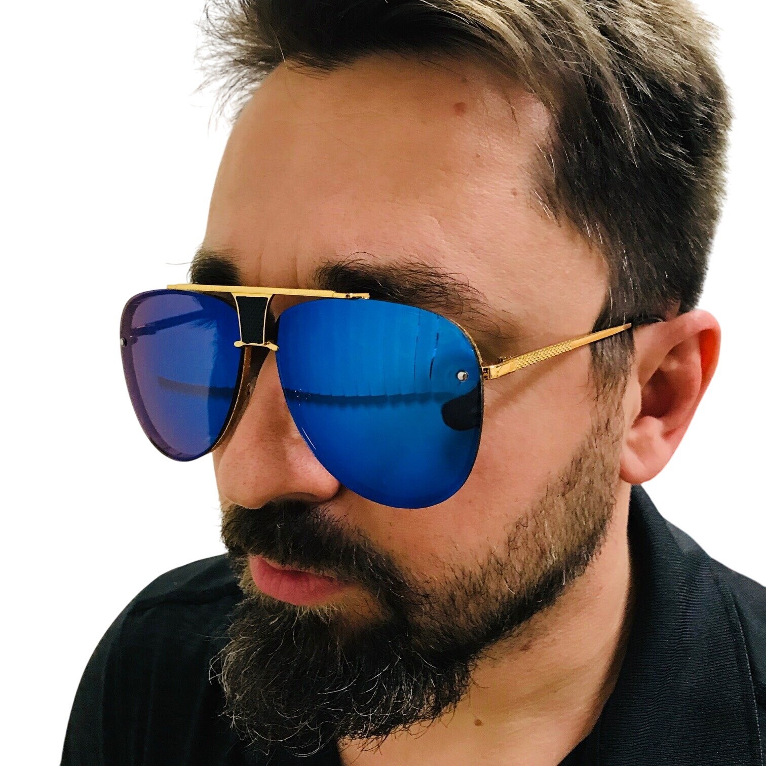 Aviator Sunglasses Blue Mirrored Lens Gold Frame Fashion Men Trendy Driving New