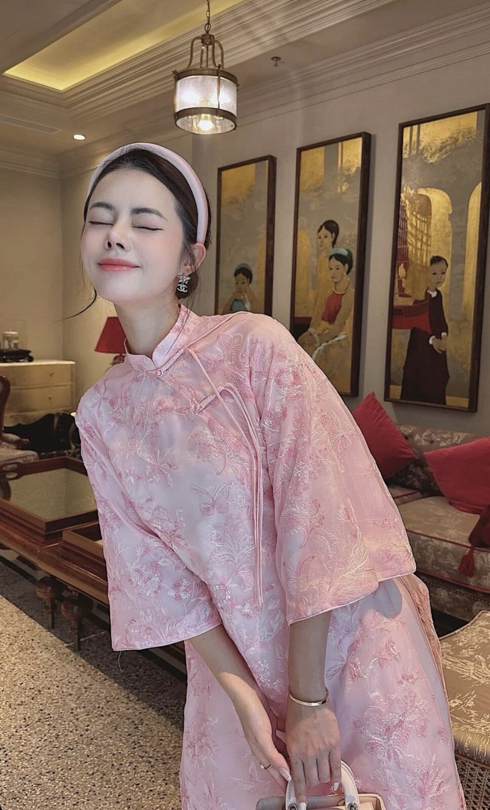 Pink Embroidered Vietnamese Ao Dai Size 5xl US L/XL