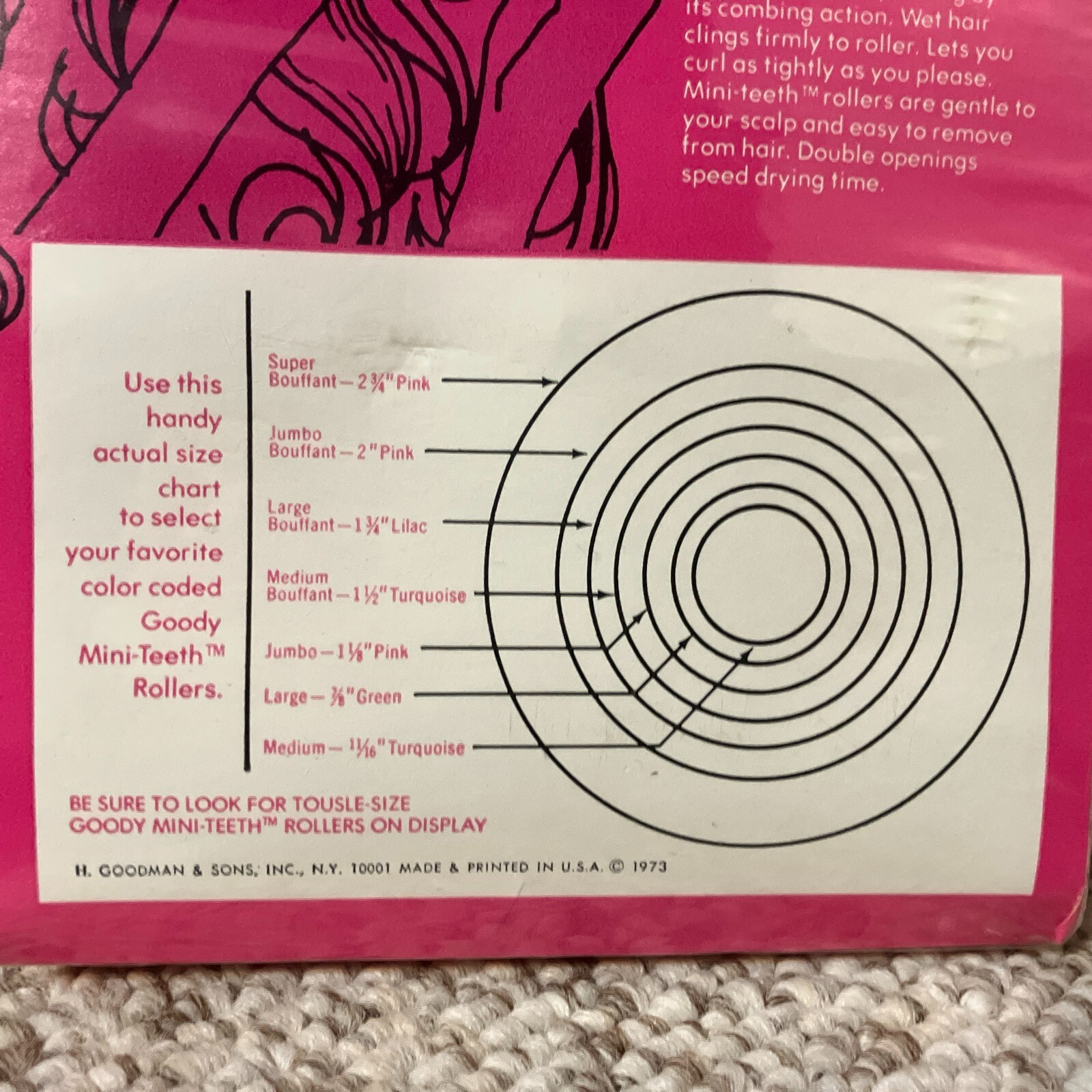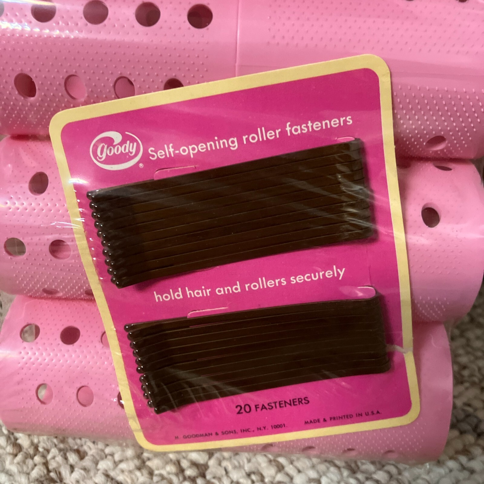 Goody Hair Rollers 2 Jumbo Bouffant Pink 10 Set mini-teeth fasteners NOS 1973