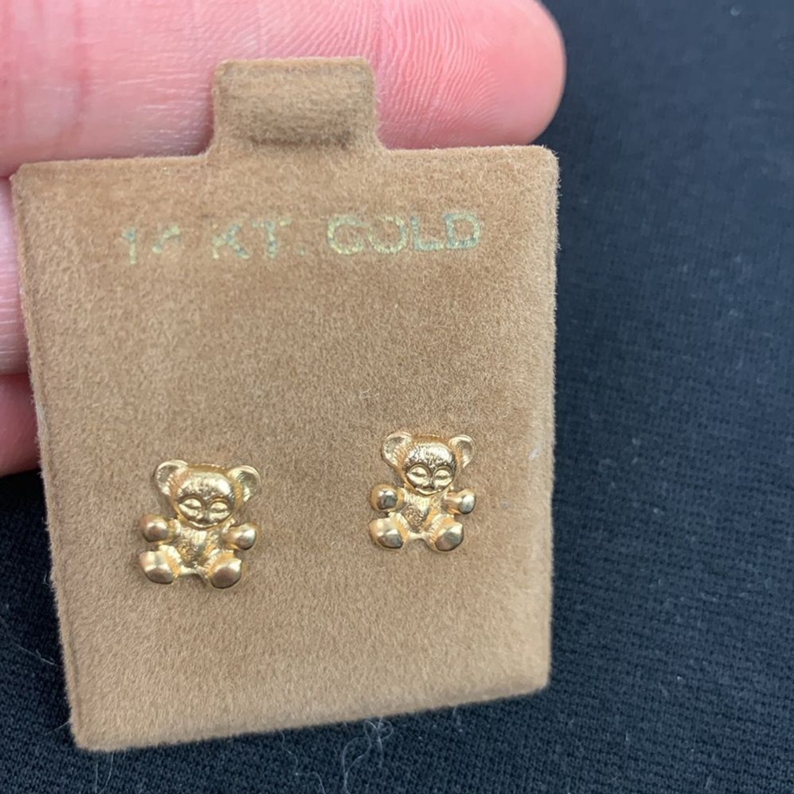 как выглядит 14K Gold Teddy Bear Earrings Vintage фото