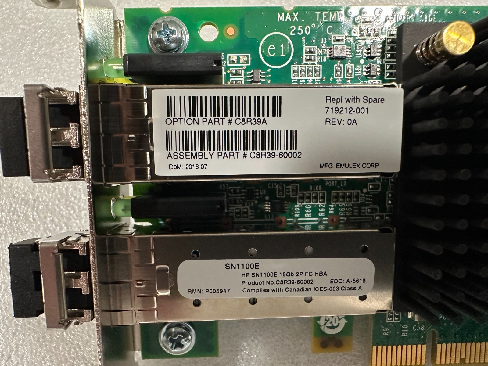 719212-001 SN1100E C8R39A 719212-001 HP 16Gb DUAL-PORT FC HBA ADAPTER CARD LF