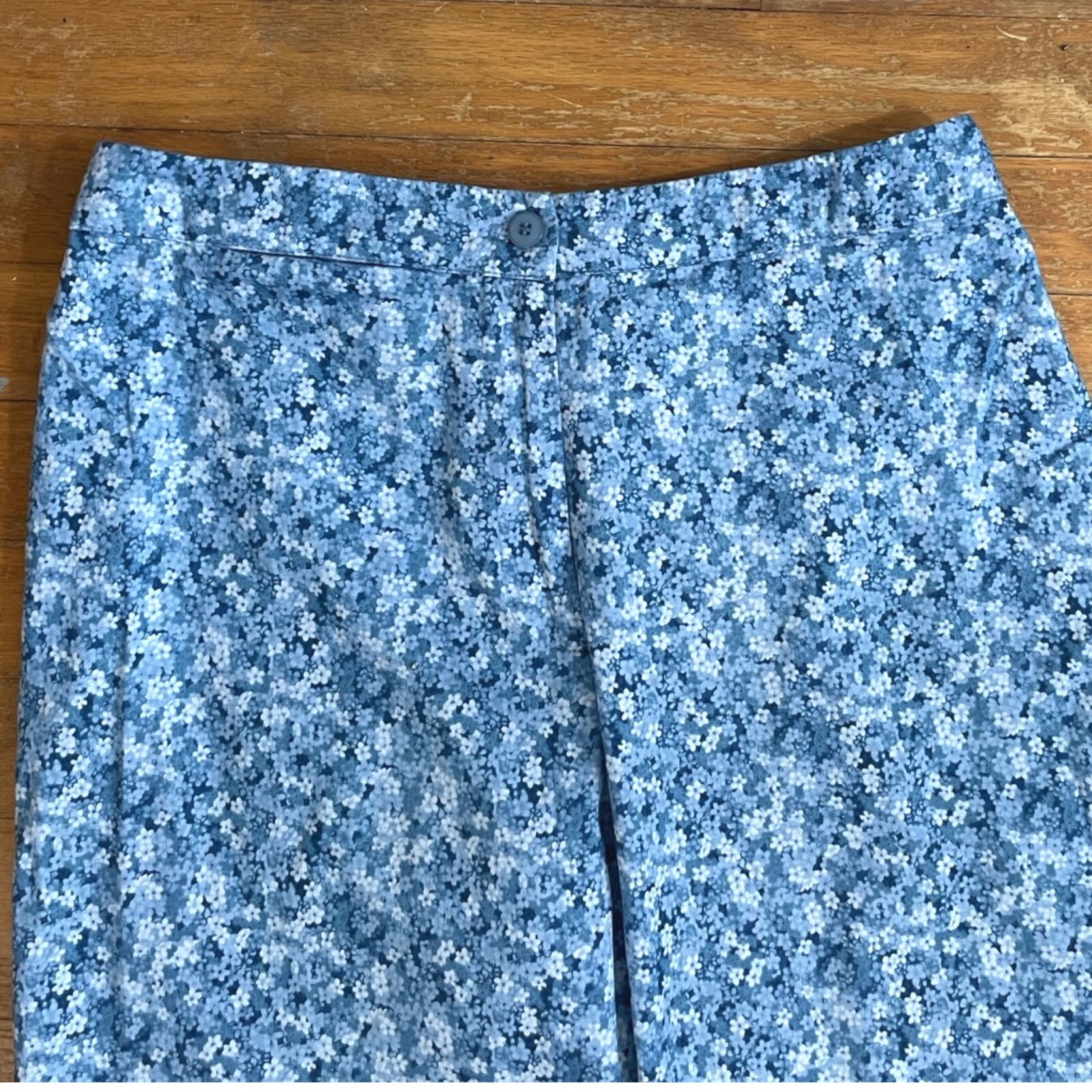 как выглядит Vintage Laura Ashley Floral Capris Size Small 28" Waist 1990s Cotton Pants Blue фото
