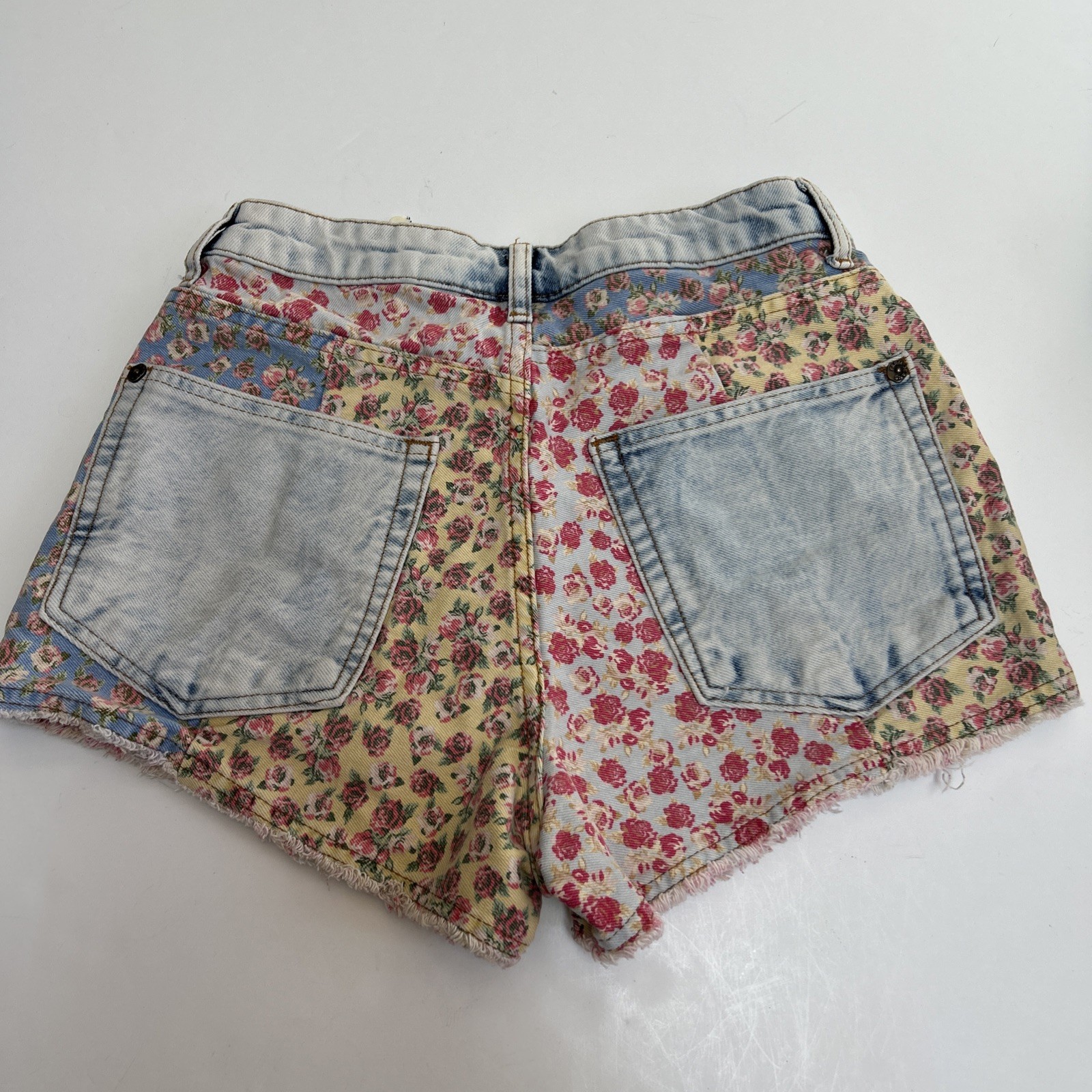 Anthropologie Farm Rio High Rise Button Fly Patchwork Floral Denim Shorts 27