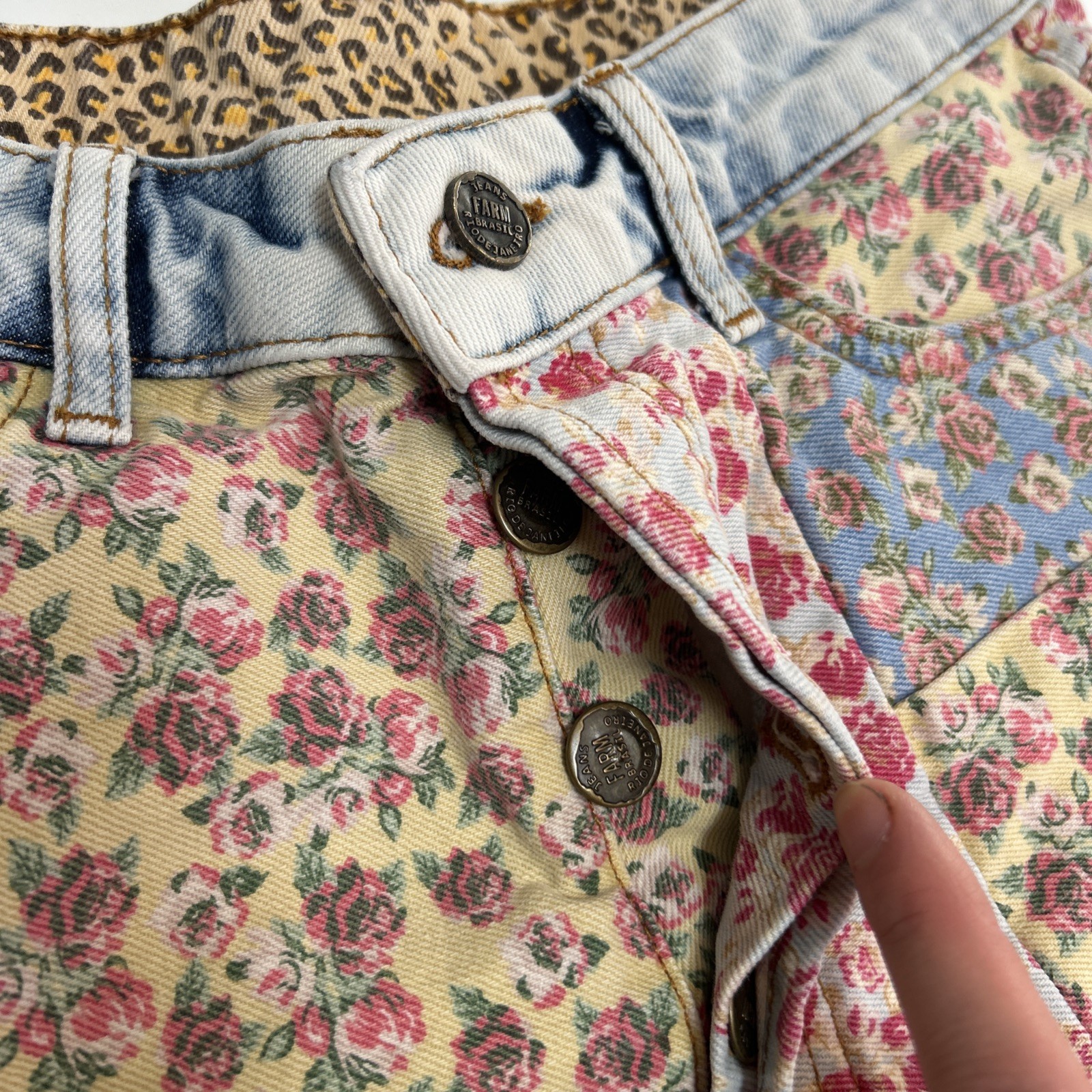 как выглядит Anthropologie Farm Rio High Rise Button Fly Patchwork Floral Denim Shorts 27 фото