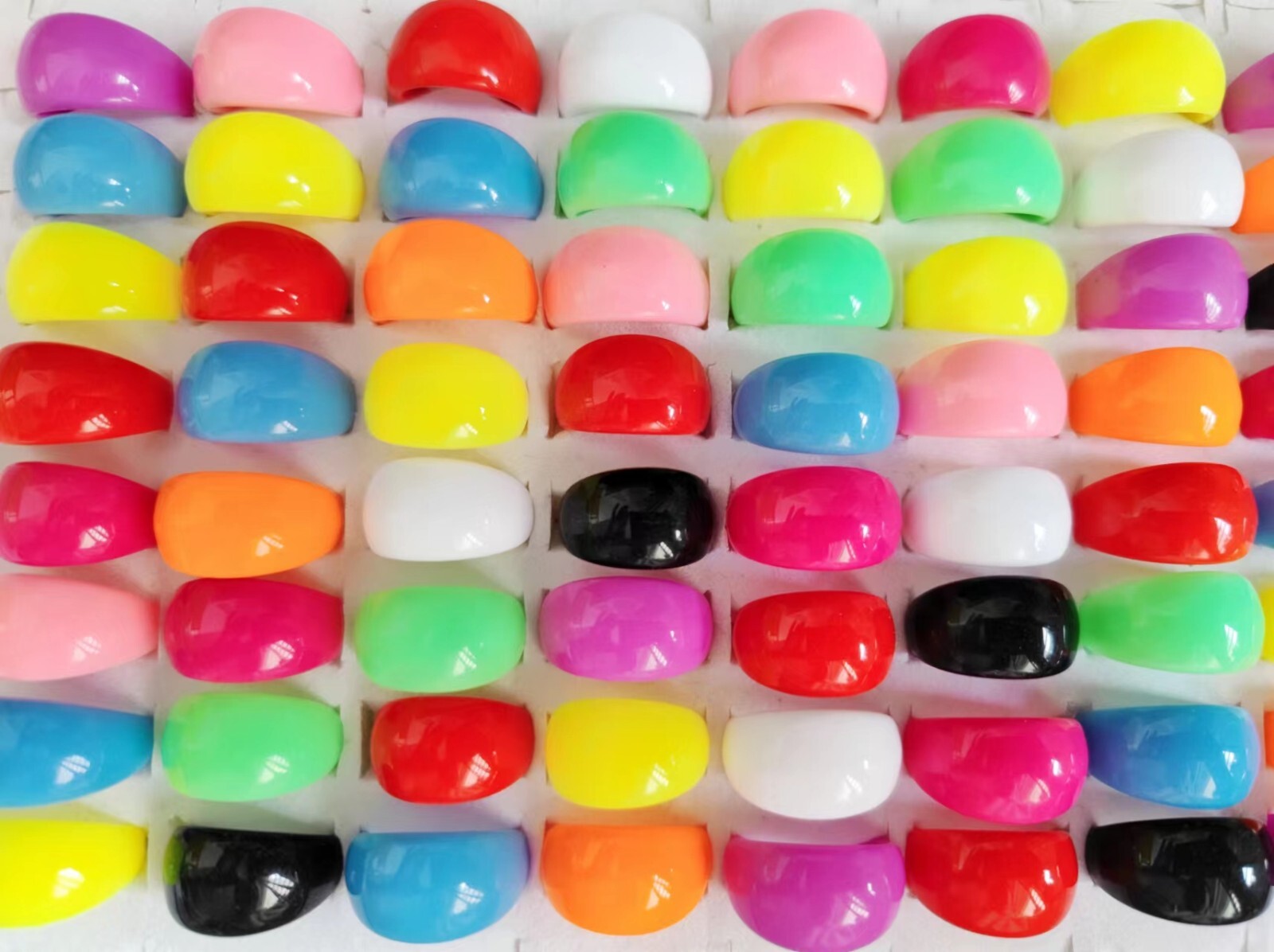 100Pcs Wholesale MixedLots Cute Candy Ring Resin Lucite Rings party Jewelry