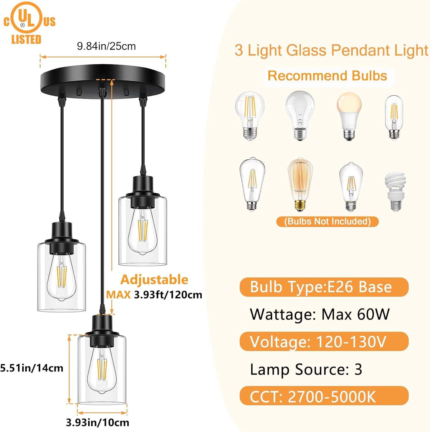 Included Components: 3-Light Glass Pendant Light