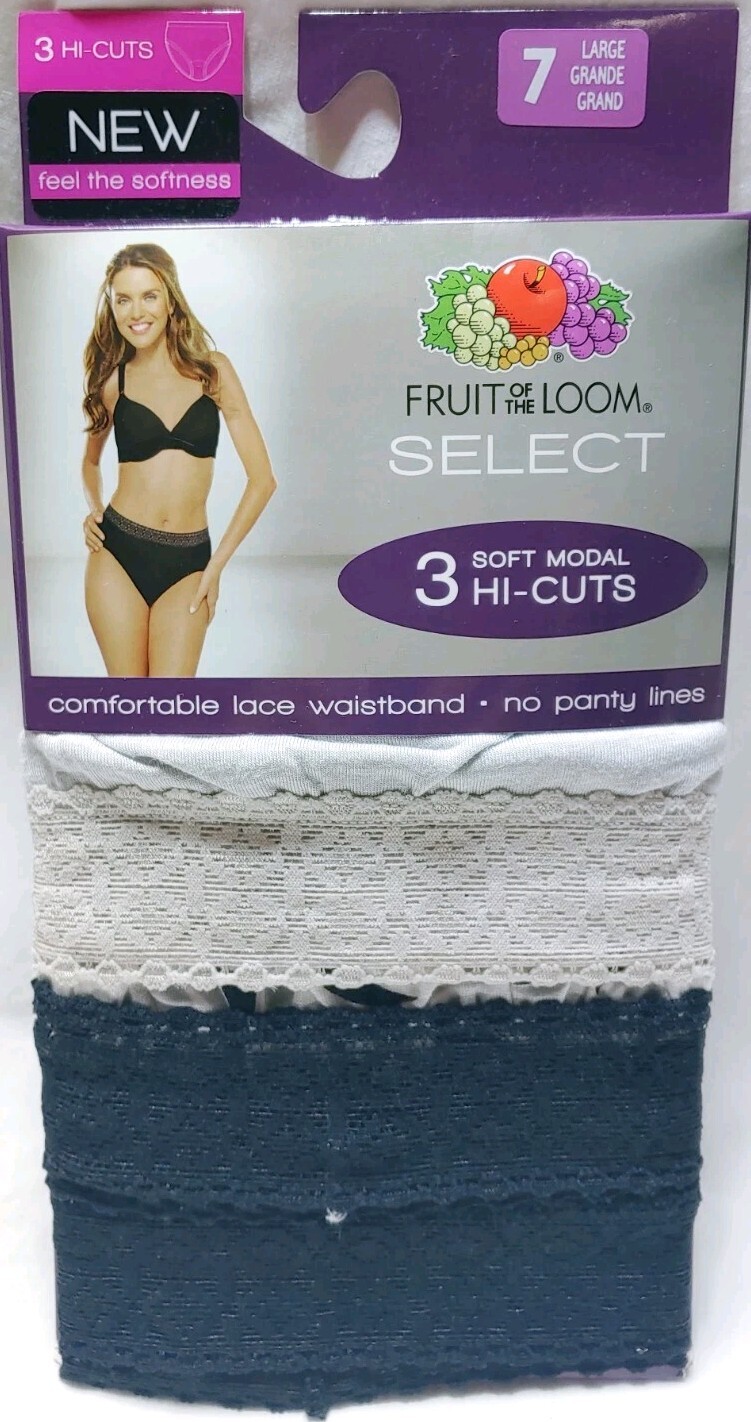 Fruit of the Loom Select Modal Hi-Cuts Underwear Large Sz7 6pr