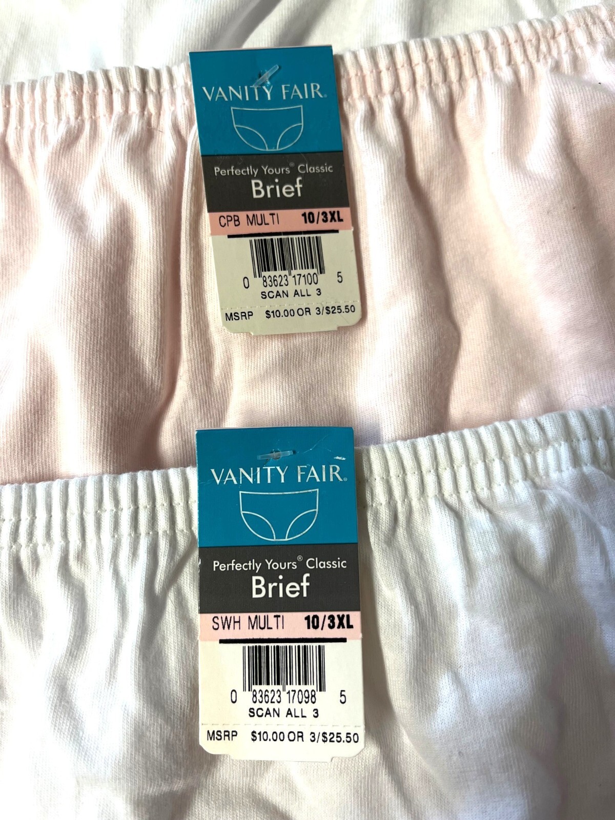 Set/3 Vanity Fair 100 Cotton Briefs Size 10 3XL White Pink 15319 NEW