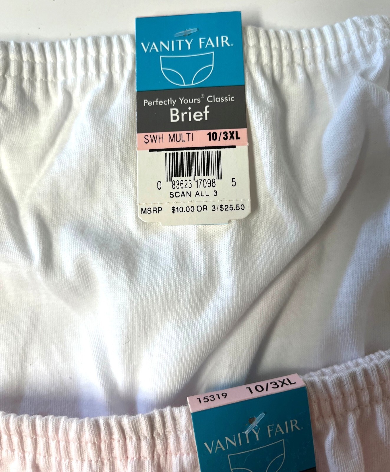 как выглядит Set/3 Vanity Fair 100 Cotton Briefs Size 10 3XL White Pink 15319 NEW фото