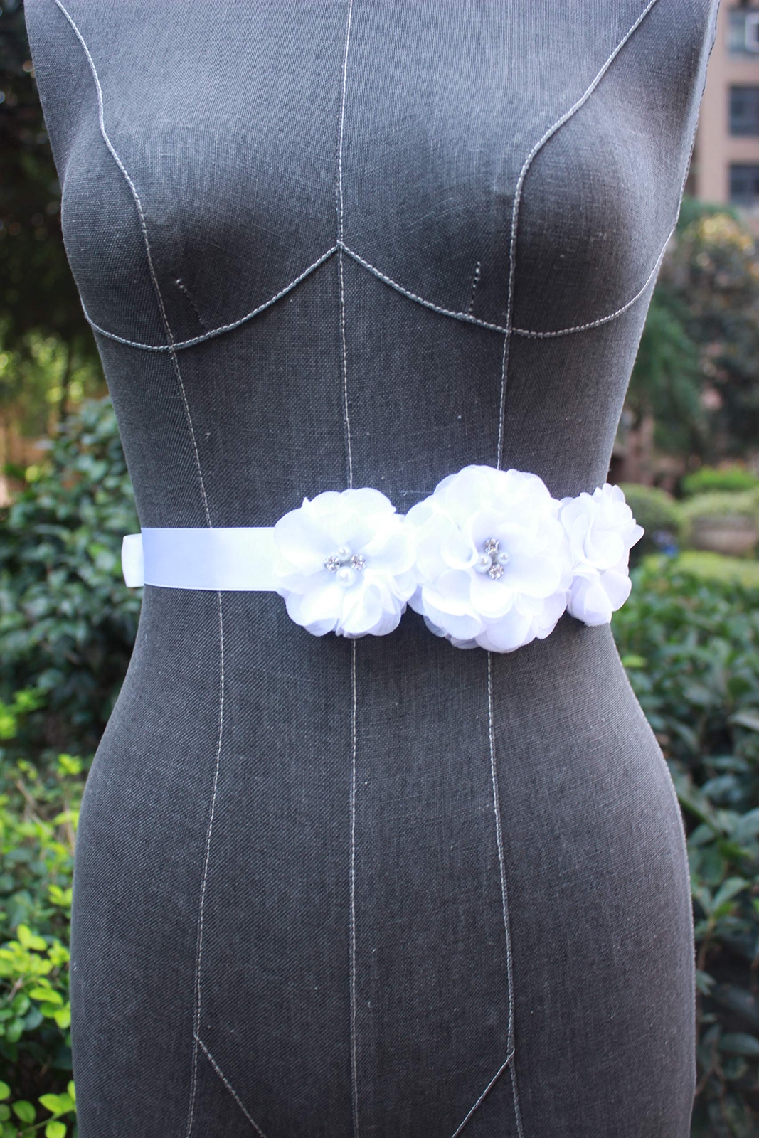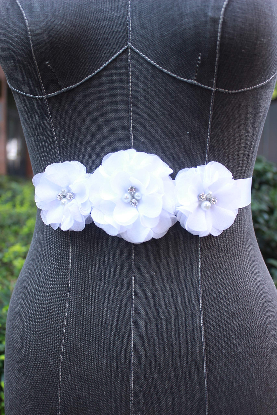 Bridesmaid and Flowergirls sashes wedding sash pearls flowers belts White