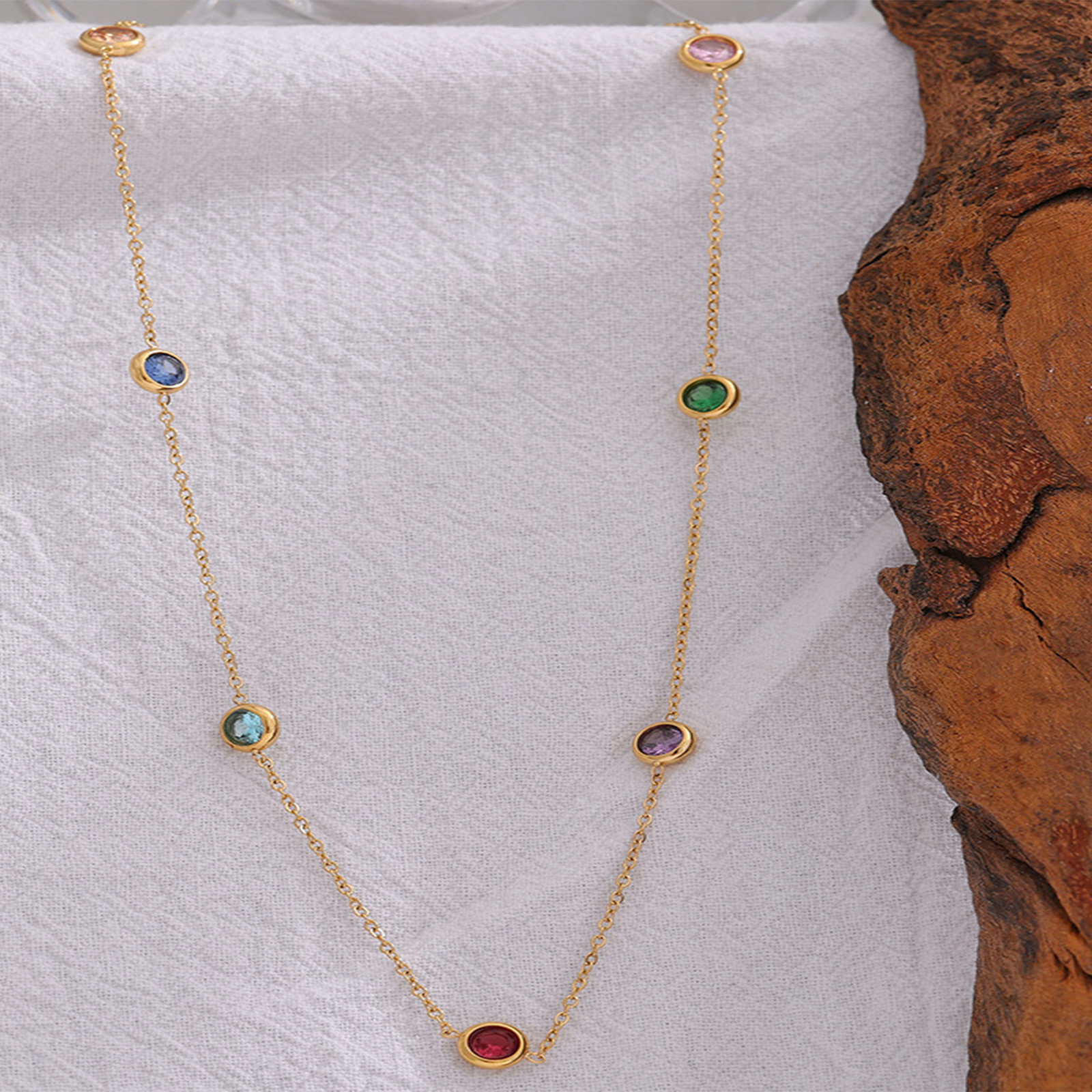 Woman Gold Plated Stainless Steel Multicolor Necklace Chain