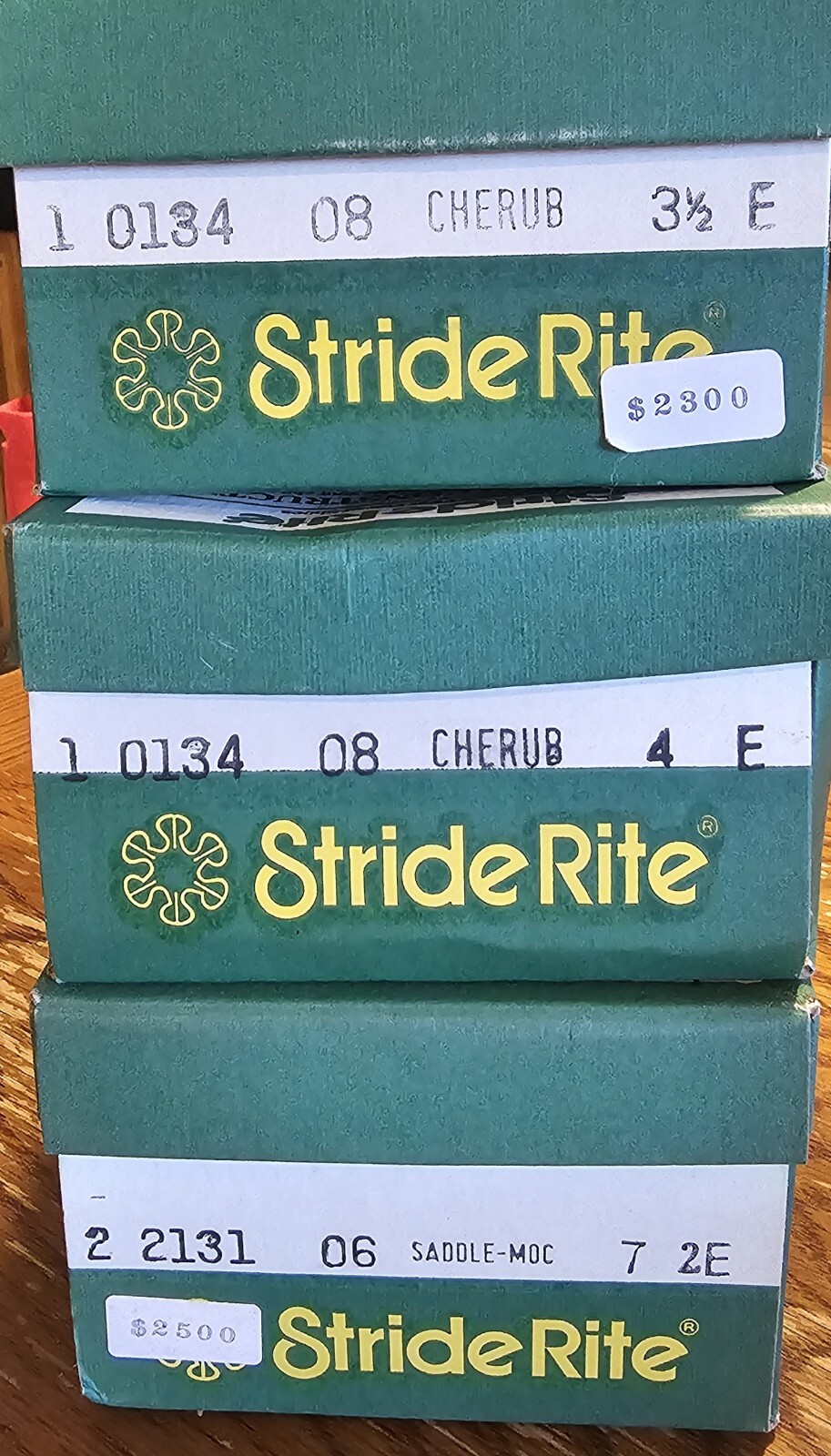3 Pairs Of Vintage Leather Stride Rite Shoes In Original Boxes SZs 3.5E/4E/7 2E