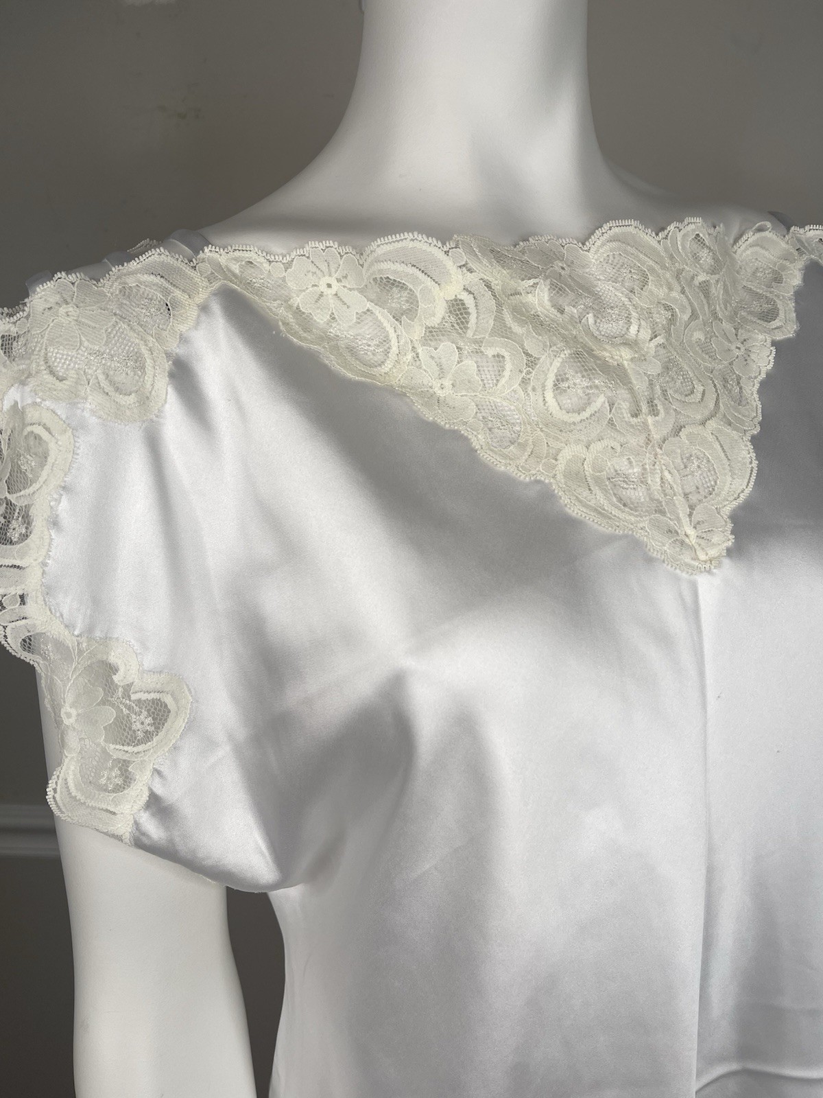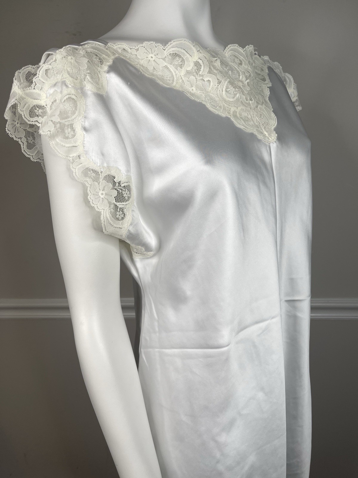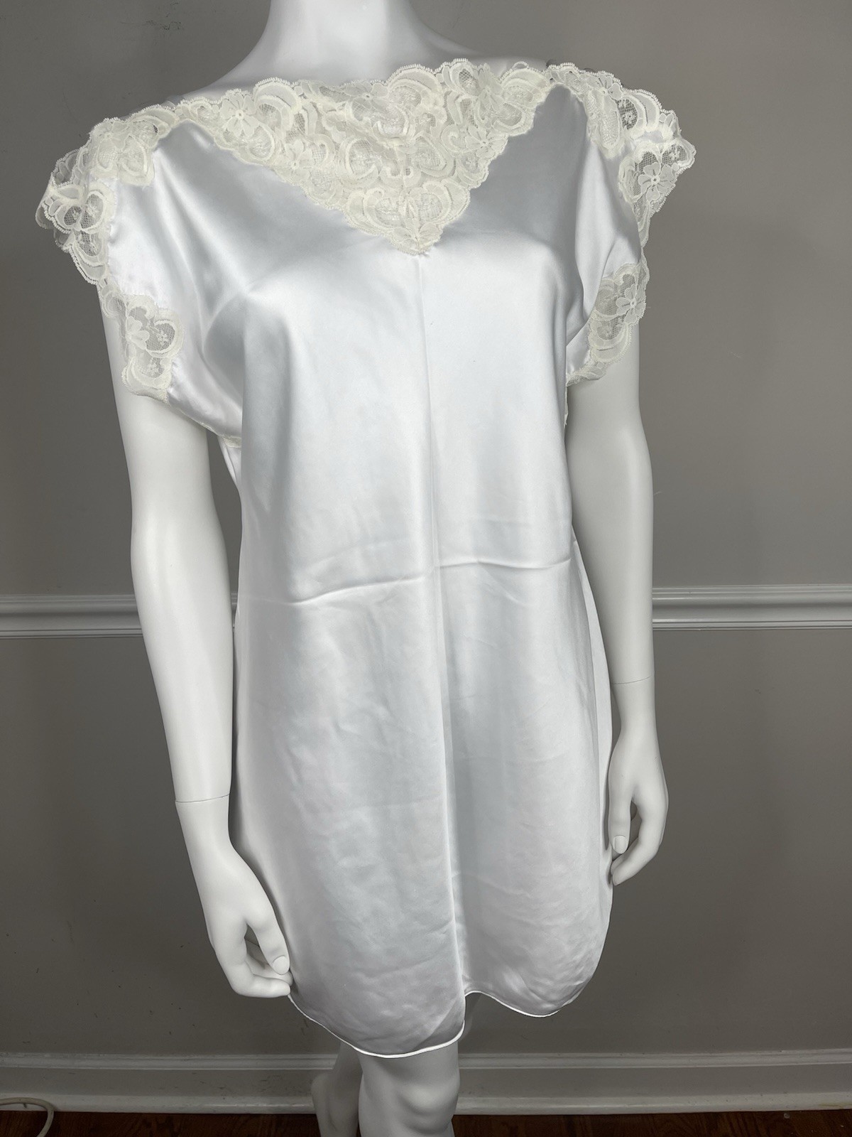 VTG Tom Bezduda Barad Co Womens Size small White Satin lace Nightgown chemise