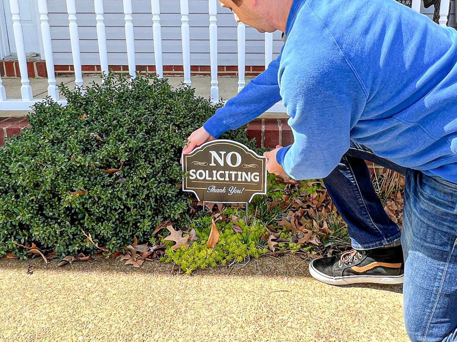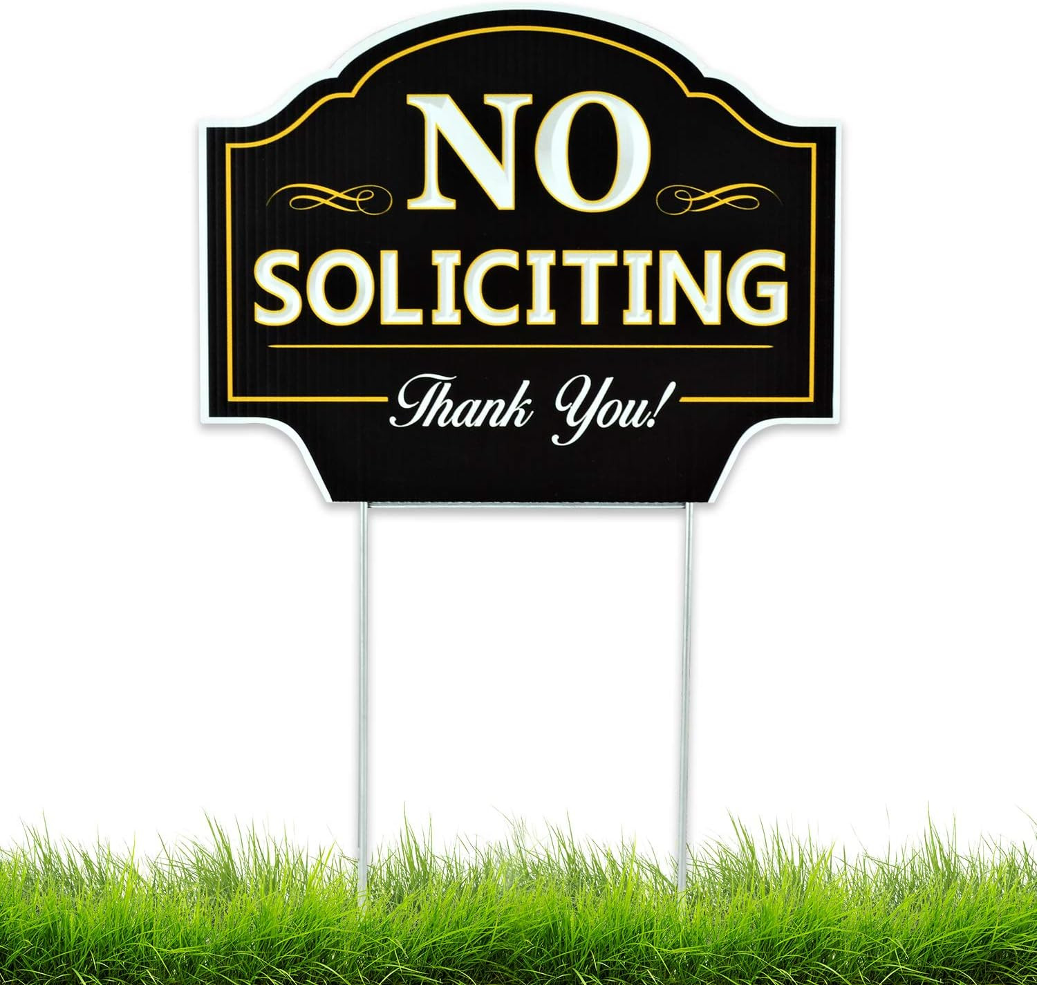 No Soliciting Sign for House Yard 11.5x9 Coroplast with Metal H-Stake Durable