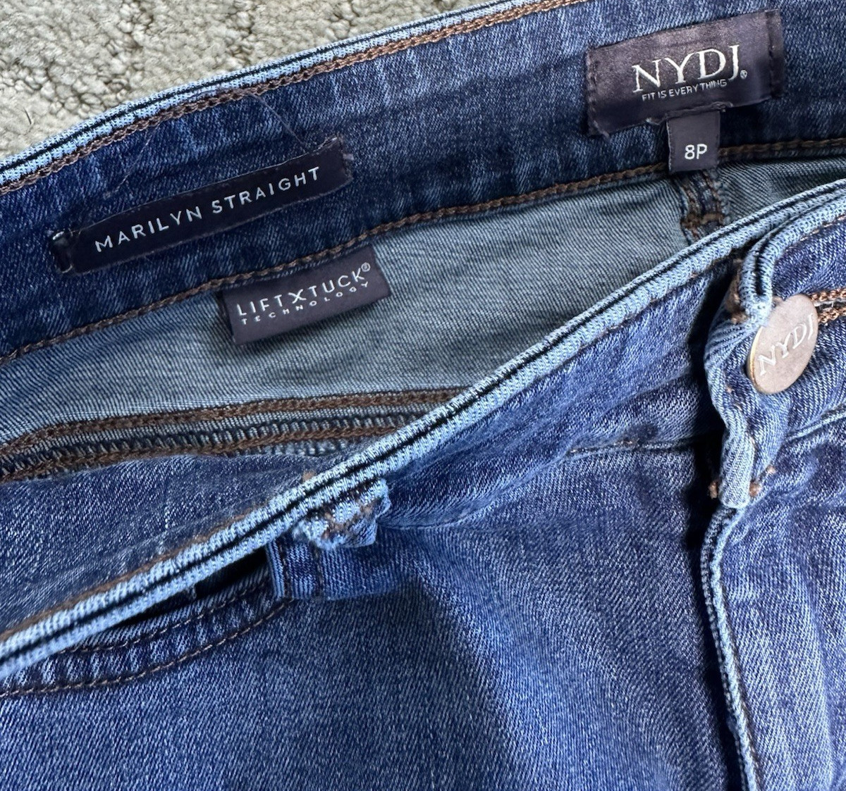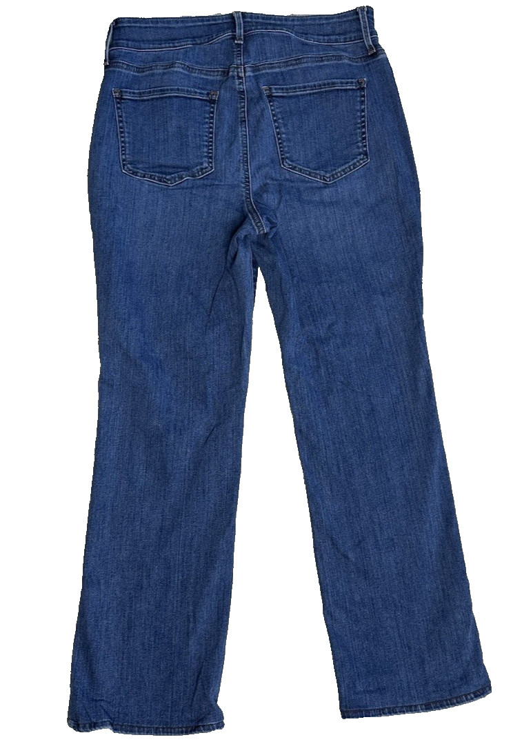 как выглядит NYDJ Womens 8 Petite Marilyn Straight Leg Lift Tuck Stretch Denim Blue Jeans фото