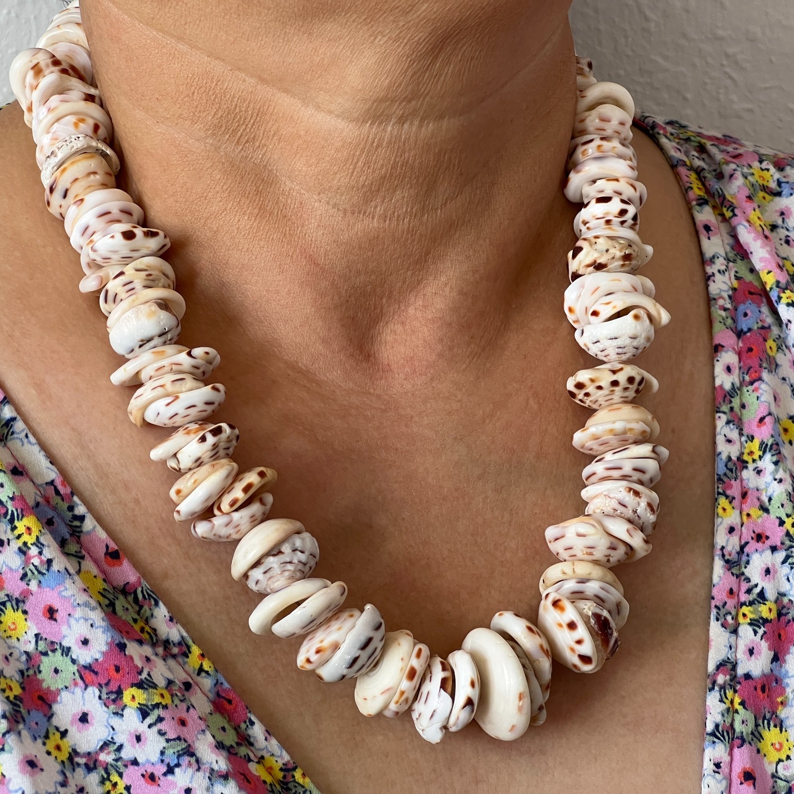 как выглядит Hawaiian Puka Shell Necklace with Large Dash Patterned Puka Shells Vintage 70s фото