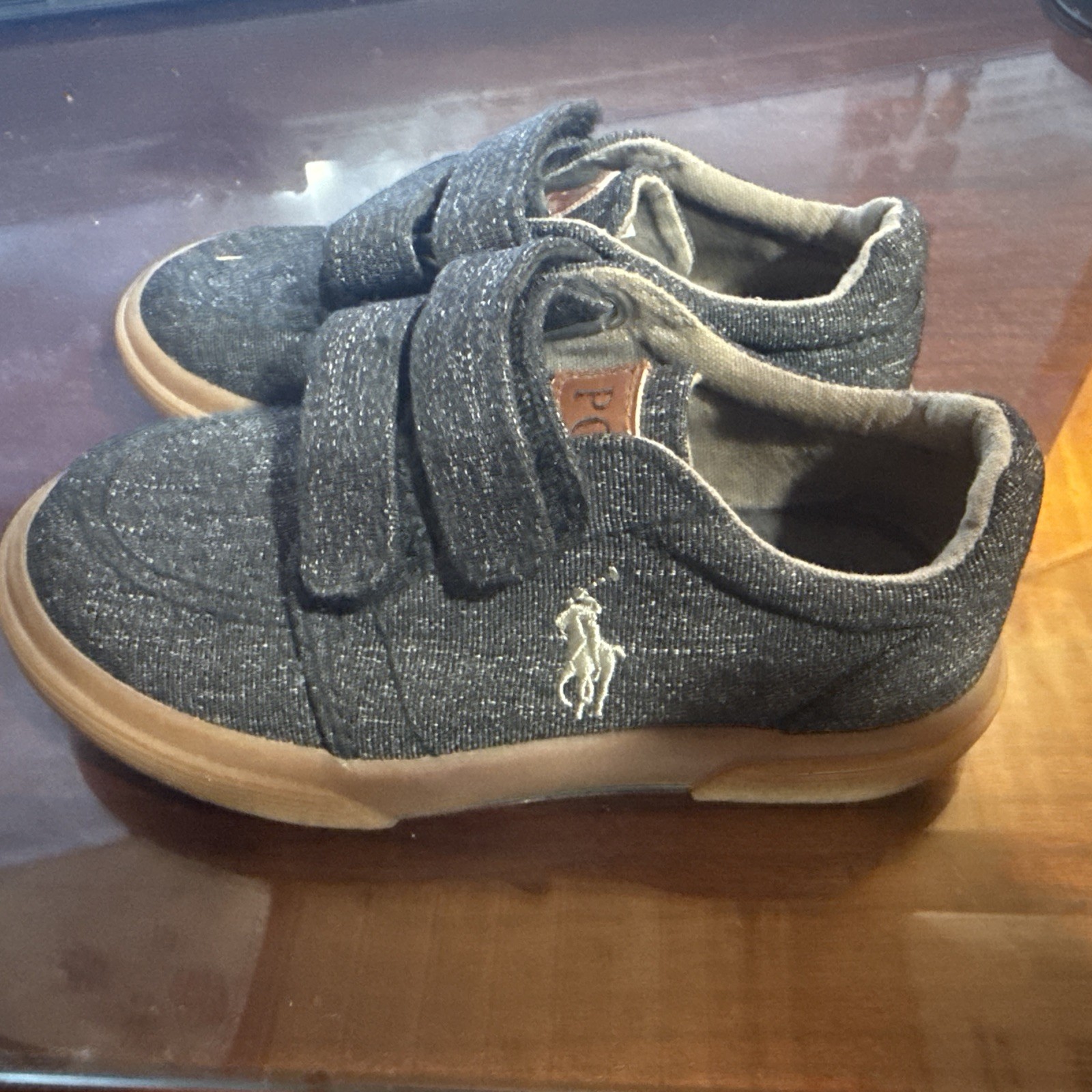 как выглядит Polo Ralph Lauren Kids Boys Hadley Sneaker Grey/White/Tan US Sz 8 фото