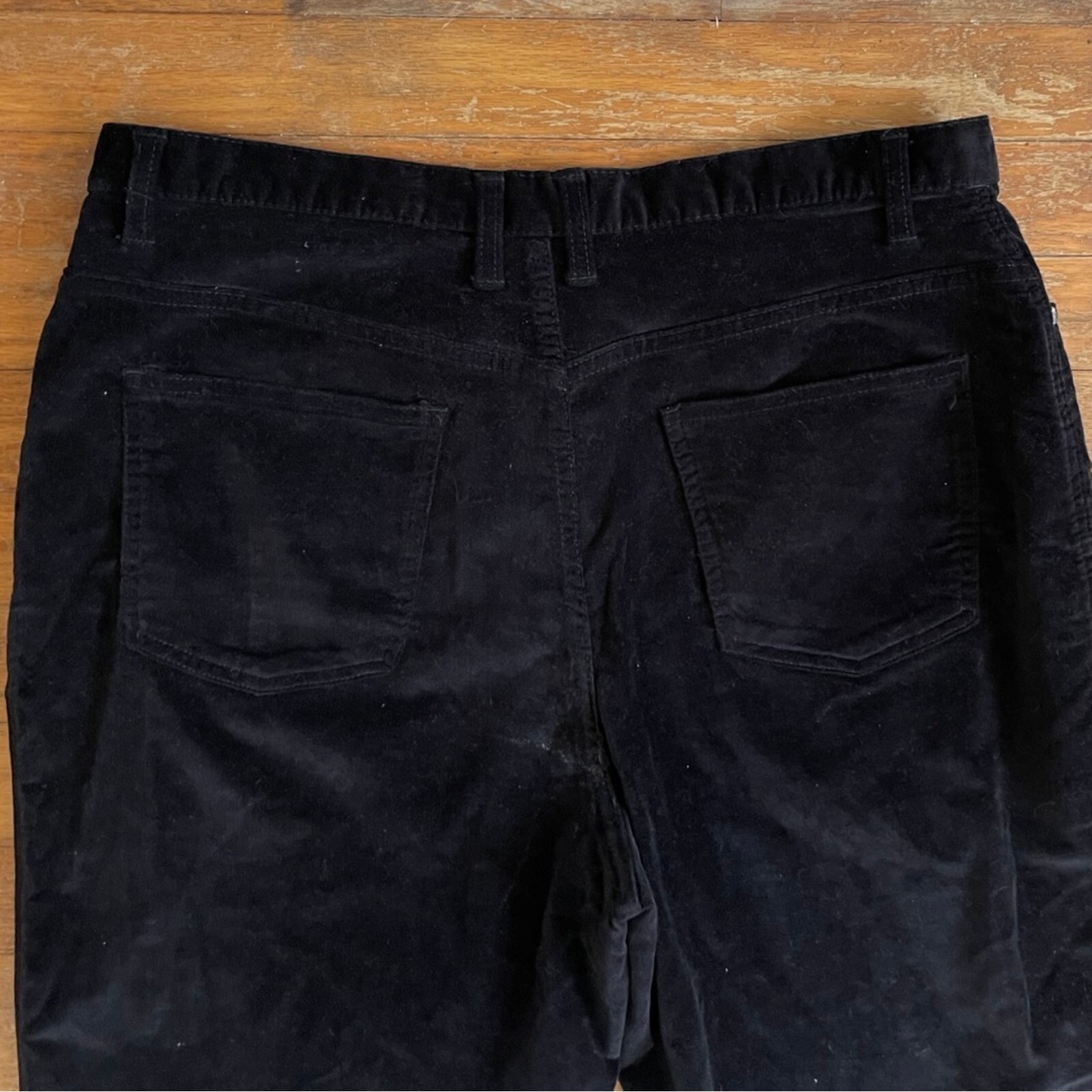 как выглядит Vintage Black Velvet Pants Size XL 16 35" Waist 1990s High Waist Cotton Trousers фото