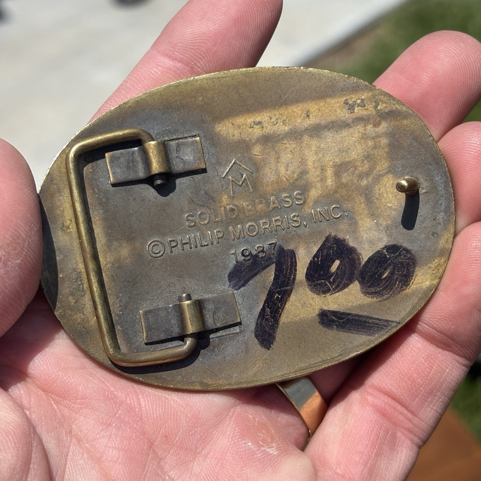 Vintage MARLBORO Longhorn Bull Belt Buckle Solid Brass 1987 Phillip Morris