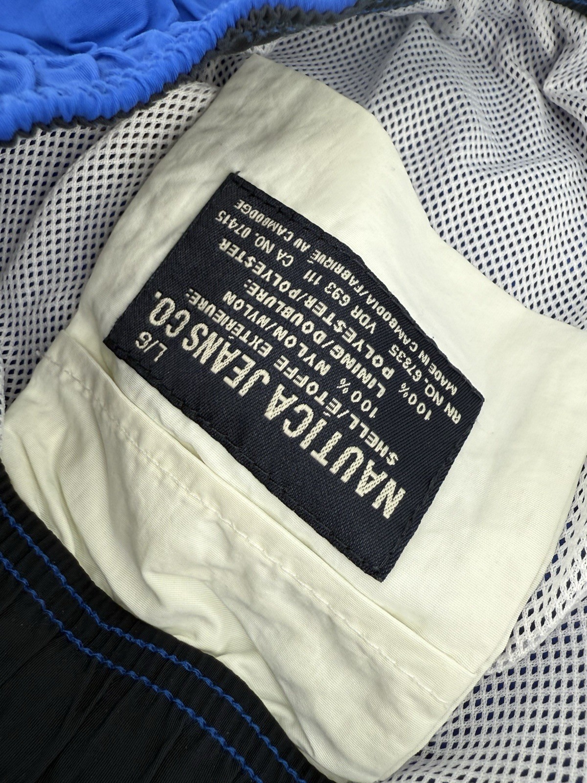 как выглядит Vintage Nautica Jeans Co Mens Swim Trunks Size L Blue White Mesh Lining фото