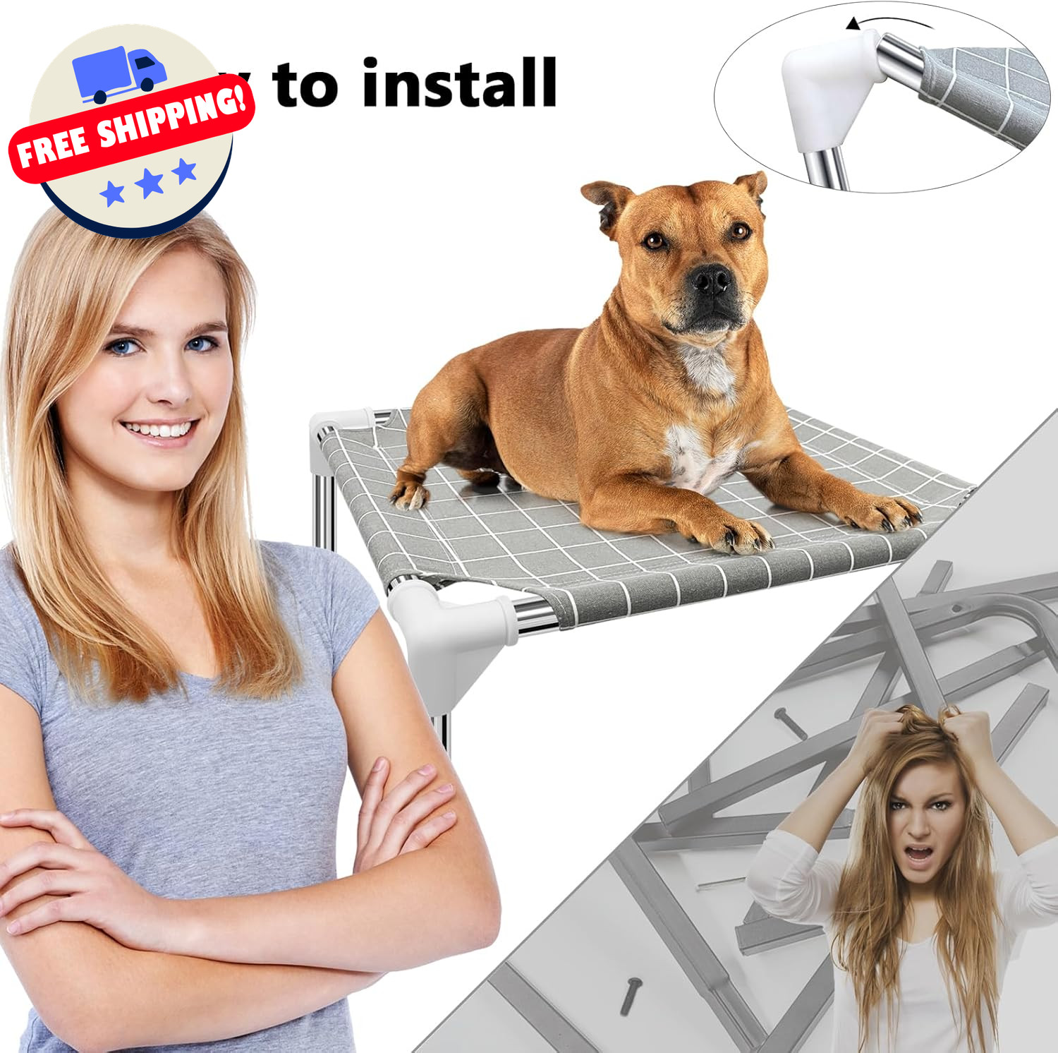 как выглядит Elevated Pet Bed Dog Cot Raised for Indoor Outdoor Use Breathable Fabric фото