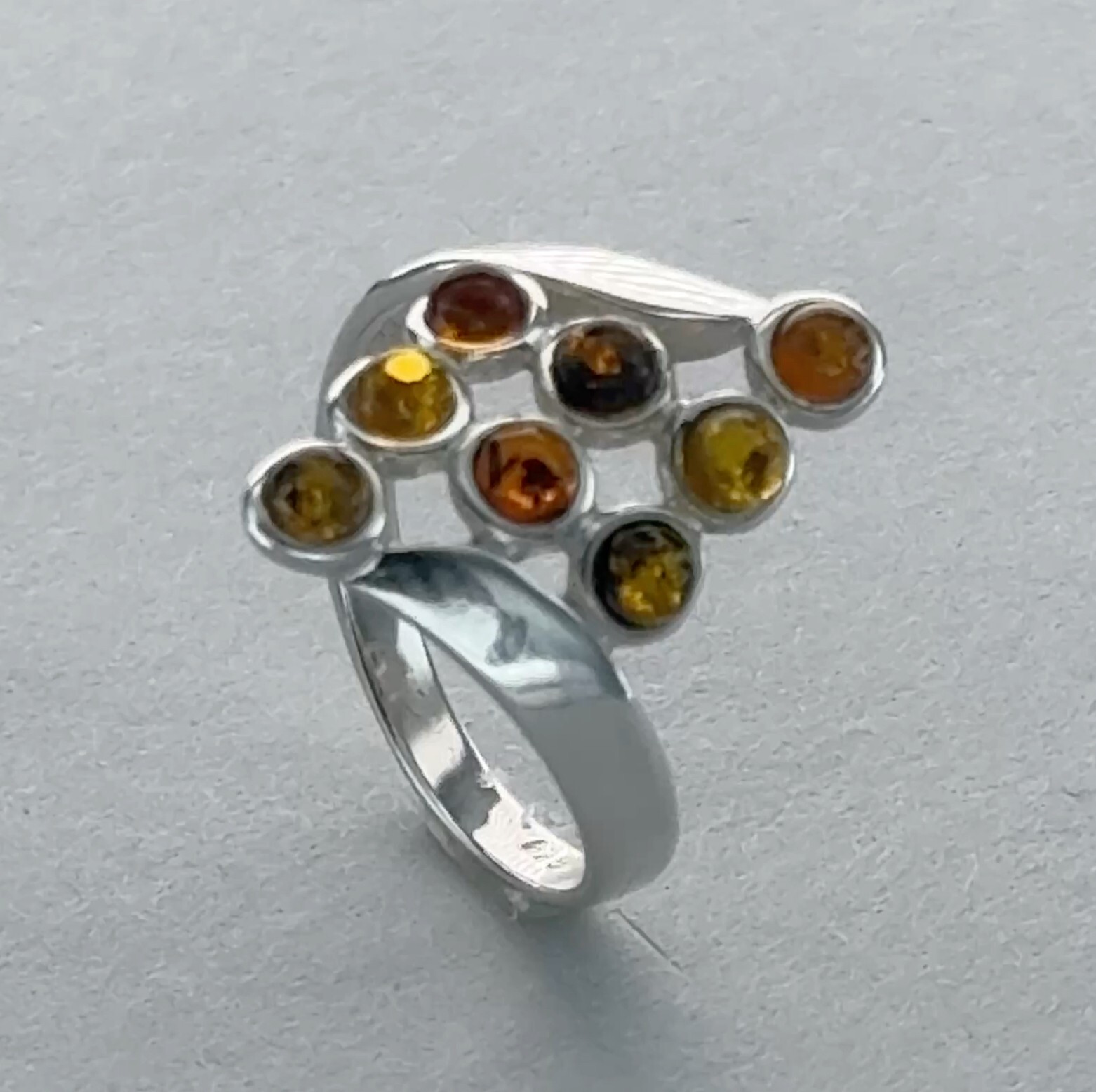 как выглядит Round Multi-Color BALTIC AMBER Rectangle Ring - 925 STERLING SILVER Poland 86e фото
