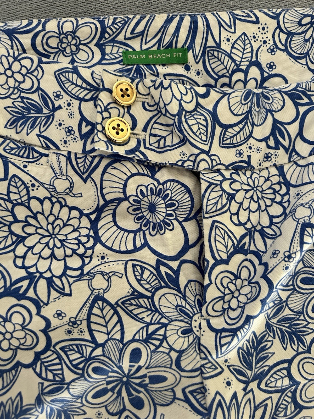 Lilly Pulitzer Pants Womens Sz 2 Blue White Floral Print Palm Beach Fit Stretchy
