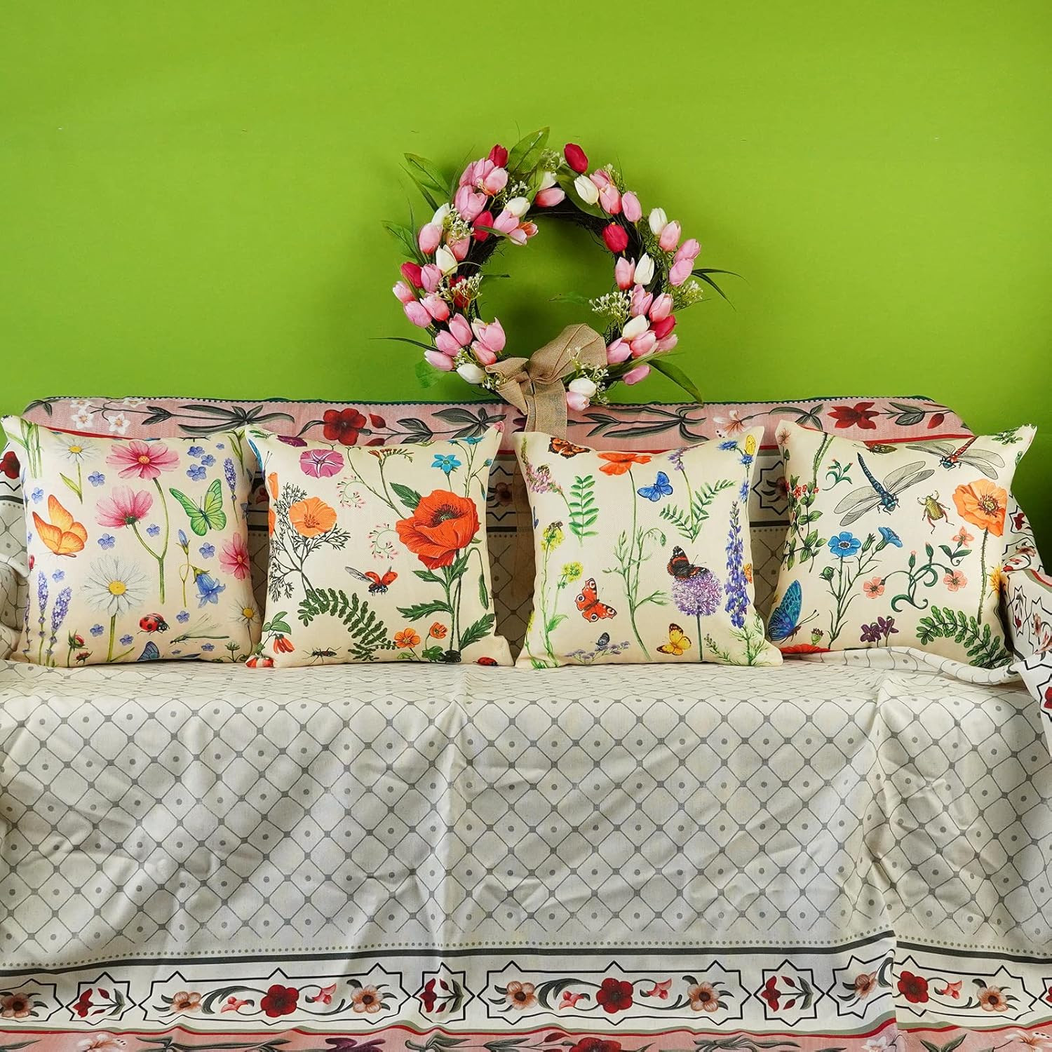 Outdoor Waterproof Spring Summer Pillow Covers 16X16 Inch Set of 4 Floral Farmho
