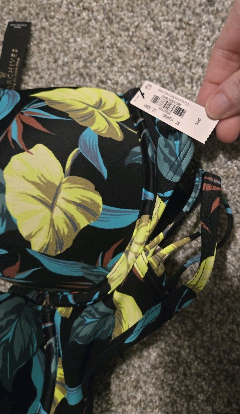 NWT Victoria's Secret VS Bombshell add 2 cups bikini swim top 32C vintage leaves